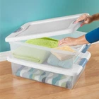 Menu Other Items Feedbacks About Us Contact Us Add To Favorites 6-Pack Stackable Storage Bin with Lid, Clear Plastic Design, 32 Quart Dimensions & Size: The storage boxes have outside dimensions of 23 3/4" x 16" x 6 7/8" and interior dimensions at the bottom of 20" x 13 3/8" x 6 3/8", making them ideal for storage needs. Versatile & Convenient: Sterilite's Latching Boxes are ideal for storage needs throughout the home. Whether it's organizing your closet, bedroom, or pantry, these boxes provide a durable and secure solution. Effortless Access: The innovative latch design enables the lid to lift smoothly, as if it were hinged, allowing for easy one-handed access to your stored items. Space-Saving & Stylish: Designed with an efficient shape and modern styling, these containers save valuable space while adding a touch of contemporary flair. Clear base for quick viewing of contents and recessed lid for stacking. Sterilite products are proudly made in the USA since 1939 and are BPA and phthalate-free. Product Description Sterilite Latching Boxes Size Comparison Add to Cart Add to Cart Add to Cart Add to Cart Add to Cart Add to Cart Add to Cart Customer Reviews 4.6 out of 5 stars 5,839 4.6 out of 5 stars 5,839 4.6 out of 5 stars 5,839 4.4 out of 5 stars 54 4.6 out of 5 stars 3,111 4.6 out of 5 stars 3,891 4.6 out of 5 stars 5,839 Price $52.00 $ 52 . 00 $34.95 $ 34 . 95 $61.79 $ 61 . 79 $91.28 $ 91 . 28 $59.99 $ 59 . 99 $61.99 $ 61 . 99 $91.98 $ 91 . 98 Capacity 32 Quarts 6 Quarts 15 Quarts 25 Quarts 56 Quarts 64 Quarts 106 Quarts Outside Dimensions 23 3/4" x 16" x 6 7/8" 14 1/8" x 7 5/8" x 4 7/8" 16 1/4" x 11 1/4" x 6 3/4" 16 1/4" x 11 1/4" x 11 5/8" 33 7/8" x 18 3/4" x 7" 23 3/4" x 16" x 13 1/2" 33 7/8" x 18 3/4" x 13" Crystal Clear base ✔ ✔ ✔ ✔ ✔ ✔ ✔ Wheels ✘ ✘ ✘ ✘ ✔ ✘ ✘ Material Plastic Plastic Plastic Plastic Plastic Plastic Plastic Item Specification Item model number 1496 Storage Volume 32 Quarts Style 6 Pack Capacity 32 Quarts Number of Items 6 Closure Type Latch Pattern Boxes Country of Origin USA Batteries Included? No Unit Count 6.0 Count Batteries Required? No Number of Compartments 1 Material Plastic Maximum Weight Recommendation 50 Pounds Manufacturer Corporation Item Package Quantity 1 Water Resistance Level Waterproof Item Weight 3.17 pounds Material Feature BPA and phthalate-free Opening Mechanism hinged,hinging,latch Occasion General household storage Special Features stackable, transparent Special Feature stackable, transparent Part Number 14968006 Color White Global Trade Identification Number 10073149149685, 00073149149688 Shape Rectangular Recommended Uses For Product Clothes Storage Size 32 Quart Product Dimensions 23.75"L x 16"W x 6.87"H Number Of Pieces 6 Dimensions Shipping Returns Additional Info Product Dimensions: 16.0 "h x 23.75 "h x 6.87 "h. Weight: 3.17 lb Fast shipping is very important for us. Our standard shipping service is FREE. Your order will be shipped within 1-3 business days upon full payment received. Most items are delivered within 3-5 business days, however, please allow 3-10 business days. We are shipping only to USA. We only ship to the confirmed Paypal address. We reserve the right to cancel any order for any reason at any time. We are not responsible for undeliverable addresses. We offer a 30 day return policy from checkout winning date. Your satisfaction is guaranteed! If for any reason you are unhappy with your item, just return it within 30 days for a full refund, minus shipping cost. Please contact us prior to initiating a return so that we can issue you a refund authorization. Items defective upon receipt must be packaged in their retail packaging as if new and returned with a detailed description of the problem. Return shipping fees are not refundable. We reserve the right to decline any returns if the above guidelines are not followed. All of our items, unless otherwise stated, will only run on 120 volts. Please check to make sure your country complies with these specifications. If you have a problem or question regarding your transaction please contact us before leaving any type of feedback. We will work with you to resolve any problem you may have.