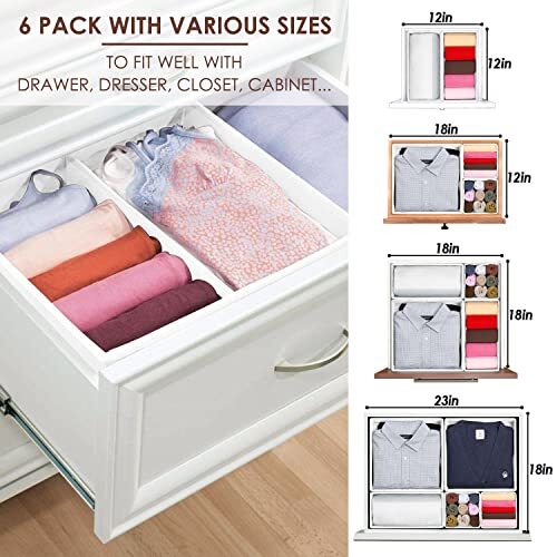 Return Policy Fast Delivery Trusted seller 6 Pack Clothes Drawer Organizer, Fabric Foldable Closet Dresser Drawer Organizer for Clothing, Bra Sock Underwear Drawer Organizer for Nursery Dorm Bedroom Organization (6 Bins, White) Product Description Tear-resistant Fabric With Sturdy Thick Board 【Space-Saving】With limited space, need to be modularity and space-saving. These drawer organzier is designed for making it easier to find anything in need. Good for organizing with clothes, socks, underwear, bra, scarves, newborn baby items and accessories. Ease of access in drawer, cabinet, dresser, closet and more. 【Durable and Great Workmanship】Quality material and exquisite workmanship. Made of long-lasting non-woven fabric which is durable and will not be easy to tear. 【Customizable and Sturdy 】No divisions allow for various uses, expecially for the irregular items. With cardboard backing, zipper design and double layer delicate stitching, STURDY, this underwear drawer organizer can be easily cleaned with a damp cloth for years of use. 【Collapsible and Lightweight】Those drawer dividers for clothes have inserts for the bottom that can be removed if needed, You can then fold them up all small. Lightweight for easy carrying. Easy to fold for travel. 【Decent Dimensions】Every bins do the trick for a variety of storage needs! Included 6 foldable organizers, 2 large squares 11.8"W x 11.8"D x 5.1"H, 2 rectangles 11.8"W x 5.9"D x 5.1"H, 2 small squares 5.9"W x 5.9"D x 5.1". Deep enough for a satisfied volume. Shipping Returns Payment Shipping Shipping is FREE to all addresses other than APO/PO boxes in the lower 48 states. All our stock ships from US-based warehouses. Shipped via USPS or UPS (depending on location and package weight) Unless stated otherwise, all orders will ship within 24-72 hours of your payment being processed. Check our feedback to see the great reviews of FAST shipping we offer. Returns Seller does not accept returns Payment We currently accept payment via eBay managed payments only. Once payment is cleared, we will dispatch your shipment within 1-3 business days. Please refer to the "Shipping" tab for more information regarding shipping speed to your destination.