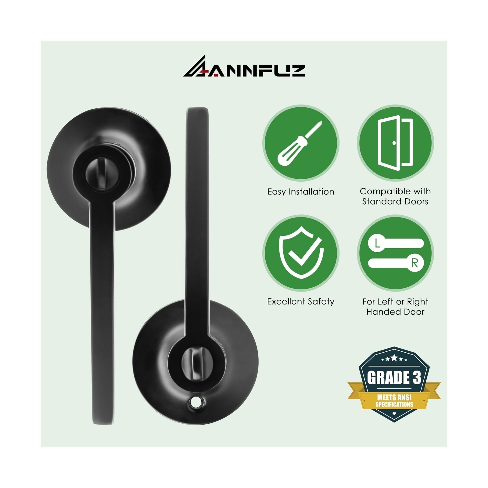 6Packs Privacy Door Handle Without Key,Interior Door Lever with Emergency Access,Reversible keyless Lever for Right & Left Side,Perfect for Bathrooms and Bedrooms Description Features: KEYLESS & EMERGENCY ACCESS: The Privacy Handle Door Lock can be unlocked without keys. When the privacy door handle is locked inside, the lock can be opened from the outside using a penny or screwdriver PRIVACY FUNCTION: The door lever can be locked inside and opened outside in an emergency without keys. Use it for your rooms, bedrooms, bathrooms, interior locking doors, and other privacy needs. REVERSIBLE HANDLES: The door handles are reversible and can be installed left-handed or right-handed. The door latch is adjustable from 2-3/8" (60 mm) or 2-3/4" (70 mm). The door lever works for doors with thickness from 1-3/8" (35 mm) to 2" (50 mm) EASY TO INSTALL: Easy to install in minutes with just a Phillips screwdriver. Fits on most standard doors. Our strike plate allows you to replace your existing one without reworking the door frame. No extra drills needed. No locksmith required WIDE RANGE USE: The Heavy-duty door handle is perfect for interior doors, bathrooms, bedrooms, and rooms that require privacy Product Details: Material: Stainless Steel, Iron Brand: ANNFUZ Color: Matte Black Product Dimensions: 14.4"L x 6.7"W Exterior Finish: Bronze Material: Stainless Steel, Iron Brand: ANNFUZ Color: Matte Black Product Dimensions: 14.4"L x 6.7"W Exterior Finish: Bronze Specific Uses For Product: Door Special Feature: Easy to Install, Durable, Adjustable Included Components: Installation Hardware Lock Type: Key Lock Item Weight: 9 Pounds Hand Orientation: Ambidextrous Package Type: standard packaging Unit Count: 6.0 Count Number of Items: 6 Manufacturer: ANNFUZ UPC: 717701875331 Room Type: Bathroom, Bedroom Indoor/Outdoor Usage: Outdoor, Indoor Part Number: A1979 Item Weight: 9 pounds Country of Origin: China Item model number: A1979 Finish: Oil Rubbed Number Of Pieces: 1 Special Features: Easy to Install, Durable, Adjustable Batteries Included?: No Batteries Required?: No Date First Available: December 1, 2023 Shipping Most orders will be shipped within 1 business days once we receive your payment. Except on weekend or public holidays. A shipping notification will be emailed to you once your order has been shipped. International shipping via eBay Global Shipping Program. No shipping to AK, HI, PR, APO/FPO, US Protectorates and PO Box. Payment We Accept Payment Via PayPal and All Major Credit Cards. Return We stand behind our products. Items can be returned for exchange or full refund within 30 days from the date you receive your merchandise. Return shipping is the responsibility of buyer unless the return is a result of our mistake (i.e., your receive the wrong item). We will pay for shipping replacement back to you if an exchange of the same product is requested. Contact us If you have any questions please contact us. We respond within 1 business day or less.