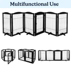 EXTRA-TALL DOG GATE - This 31.5-inch-tall dog gate is an excellent way to limit your pet’s access to certain parts of the house, while maintaining a modern appearance. The black finish on this pet fence is sure to complement any home décor. FREESTANDING - This cat gate for doorway does not require installation and features a lockable door for easy walk-through access. The gates for dogs indoor come with support feet to help increase stability and can be detached as needed. MULTIPURPOSE USAGE - This 6-panel indoor dog fence can be used at the top or bottom of stairways, hallways, doorways, or any other indoor openings. It can also be configured as a dog playpen indoor or as an open pet crate. FOLDABLE - The PETMAKER dog gates are lightweight and easily fold together for compact storage. When folded, the wooden playpen is small enough to conveniently fit in a closet, behind furniture, or take it with you in the car when traveling. PRODUCT DETAILS - Materials: Wood and Metal. Dimensions: (L) 132.5" x (W) 0.75" x (H) 31.5"; Folded: (L) 21.75" x (W) 5.5" x (H) 31.5"; Feet: (L) 8" x (W) 1" x (H) 3". For Use with Pets Only. Color: Black Finish.