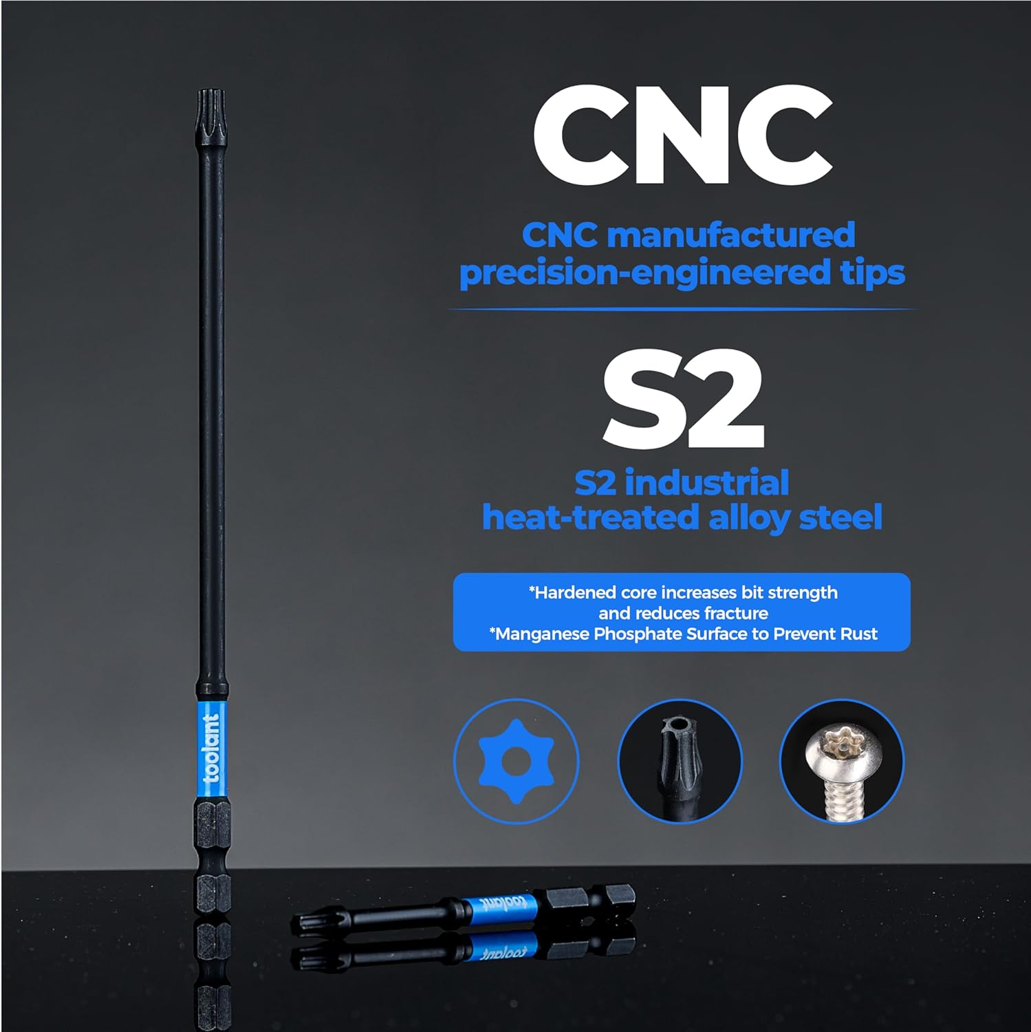 This impact torx bit set is a game-changer! The S2 steel construction and torsion zone make it incredibly durable—perfect for heavy-duty jobs. The extra-long 6" bits provide great reach, and the magnetic tips keep screws secure. No more stripped heads or broken bits—these handle impact drivers like a champ. The anti-rust coating is a nice touch, and the tamper-proof sizes cover all my needs. Worth every penny for pros and DIYers who want reliability!