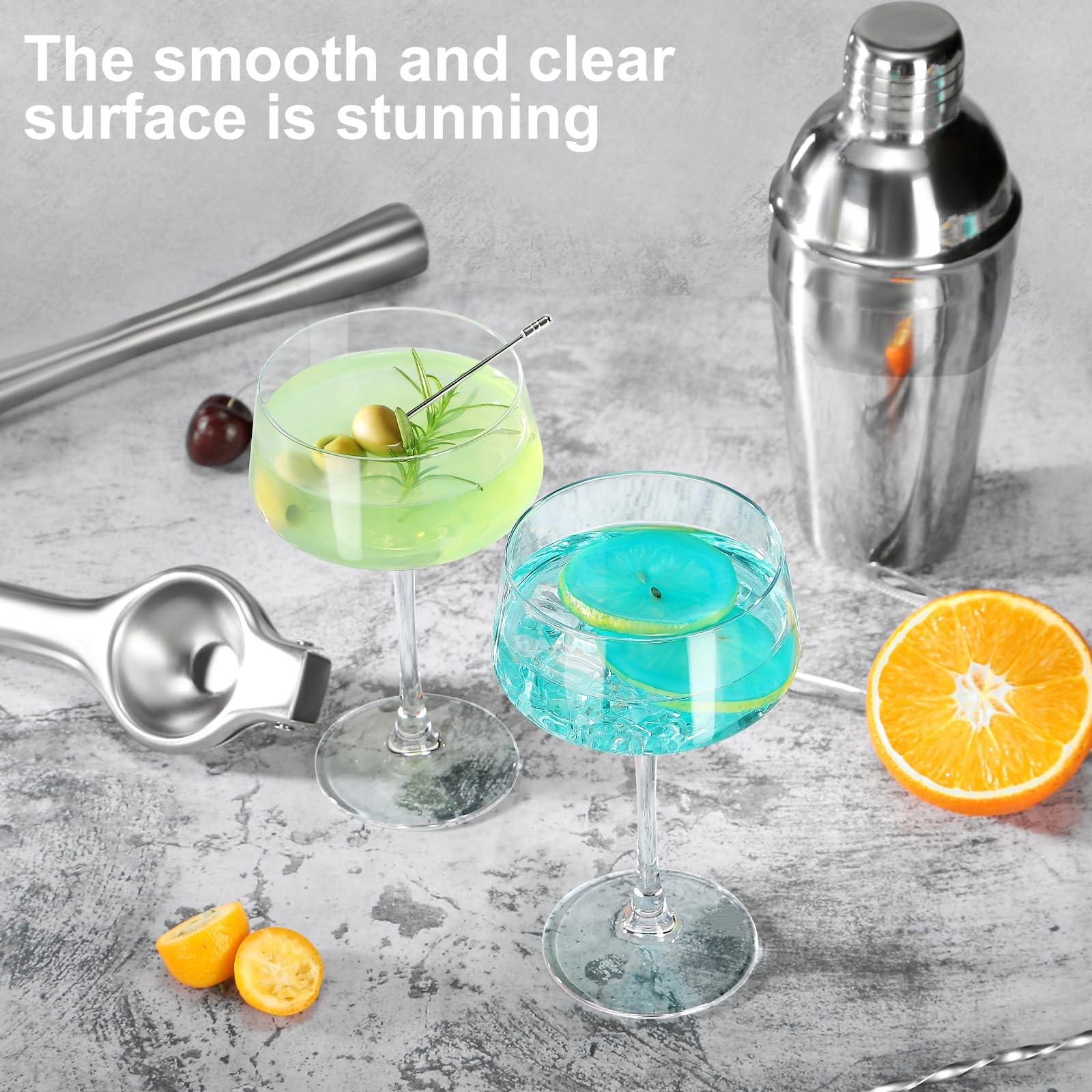 Elegant Hand-Blown 8 oz Crystal Coupe Martini Glasses Set of 4