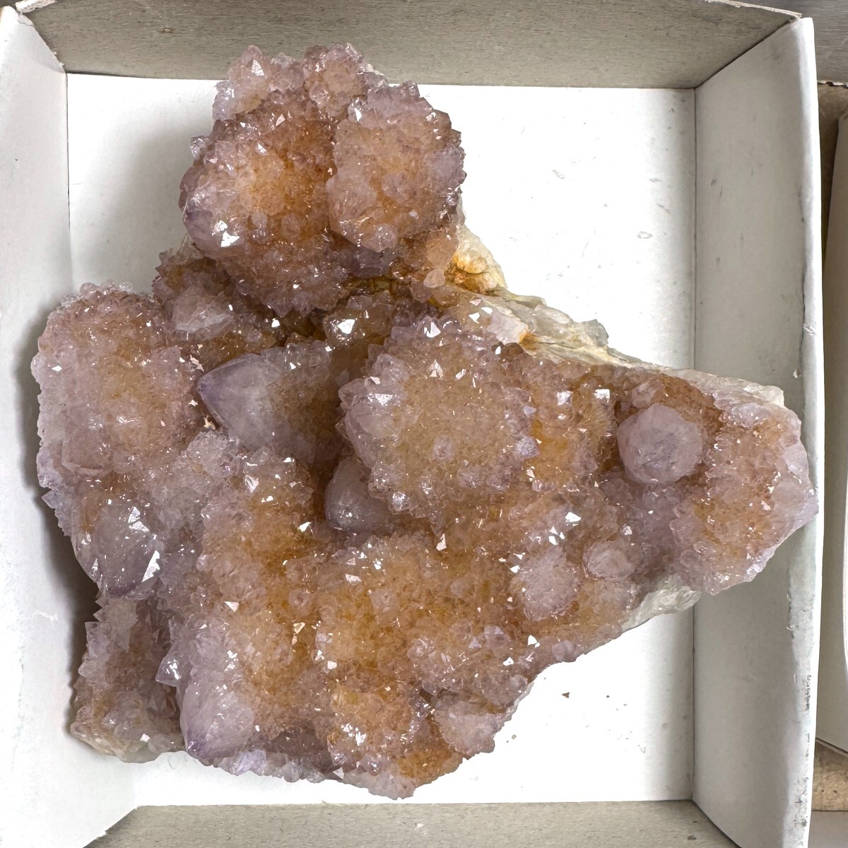 Cactus Quartz or Spirit Quartz View My Other Items For Sale Visit My eBay Store Add me to your Favorite Sellers A cactus or spirit quartz is a quartz crystal that is encrusted by a second generation of smaller crystals grown on its prism faces. These crystals were first discovered in 1986 in the Magaliesberg Mountain Range near Pretoria, South Africa. It occurs as quartz, citrine and amethyst, and comes in a wide range of colors, including purple amethyst, violet amethyst, smoky, milky clear and golden citrine. FAQ/Tips Crystals are priced by quality, color and size. Purple amethyst is more highly prized and will cost more for a smaller lesser quality crystal. Lavender is the most common color and where you will find the best quality/value for price Crystals change colors with changes in type angle and intensity of light. Color may also vary between monitors. Pictures were taken in bright natural light. We do our best to give you many views so you can judge the quality of the given crystals. If you have questions please ask before bidding or buying. Many of the crystals have special color properties: Many have phantoms, not just the ones we’ve indicated. Some have “floating” purple tips. The placement of darker purple against purple or white crystals appears to change as the crystal is turned. Many are a mixture of citrine and amethyst. The ones called “Golden Healers” or “Sunshine” have a rainbow effect on crystal faces.