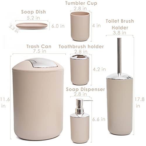 home accessories grey bathroom accessories set bathroom decor set bathroom accessories set with trash can gray bathroom accessories bathroom necessities bathroom trash can and toilet brush set bathroom soap dispenser and toothbrush holder set bathroom set soap dispenser toothbrush holder bathroom kit gray bathroom decor cute bathroom accessories bling bathroom accessories dorm bathroom essentials bathroom counter set bathroom trash can set bathroom set black bathroom sink decor soap and toothbrush holder set bathroom soap set apartment stuff bathroom trash can with toilet brush toilet set decoracion para baño decoracion para baños bathroom needs bathroom things black toothbrush holder set 6 piece bathroom accessories sets complete bathroom stuff set de baño completo bathroom decor sets accessories bathroom sets complete restroom accessories bathroom toothbrush holder set accesorios para baño bathroom accessory set bathroom accessories complete set full bathroom sets all accessories included bathroom set with trash can toilet sets bathroom essentials for first apartment toilet sets for bathroom bath accessories set bath sets for bathroom accessories beige bathroom accessories set black and white bathroom set bathroom accessory set with trash can restroom decor and accessories bathroom accessory set black black bathroom sets bathroom sets accessories with trash can teen bathroom stuff bath room. accessories set bathroom accessory sets white bathroom accessories blue bathroom accessories bathroom assets accessories set juego de baño cosas para el baño bath room full set modern bathroom accessories soap dispenser bathroom set home necessities cosas para el hogar toilet accessories bathroom toothbrush holder and soap dispenser set cosas de cocina para la casa acesorios para baños para poner cecadoras y cepillos electricos decoraciones para baños juego de jabonera y cepillo para el bano bathroom toothbrush set dorm assesories bathroom essentials for new home! Complete Bathroom Essentials Set: A full 6-piece bathroom accessories set that will keep your bathroom clean and orderly; the bathroom set is 1 mouthwash cup, 1 toothbrush holder, 1 lotion dispenser, 1 soap dish, 1 trash can, and 1 toilet brush. Elegant Accessory Set: With a stylish design and clean look, the bathroom toothbrush holder set will upgrade your bathroom to another level, to attractive modern bathrooms. Perfect gift for housewarming or wedding gift to your lovers. Top Quality Toilet Accessories: Our bathroom essential set is a durable, strong plastic that will help you keep the look just as elegant and new over time. It suits homes, hotels, office buildings, or any apartment necessities. Easy To Clean: The bathroom items are smooth, glossy beige color. Cleaning is simple: The black bathroom trash wash with soap, water, and a soft cloth, and you will keep your bathroom soap dispenser set hygienically and clean. Customer Support: bathroom sets accessories are covered under a 1-year warranty for our bathroom sets!