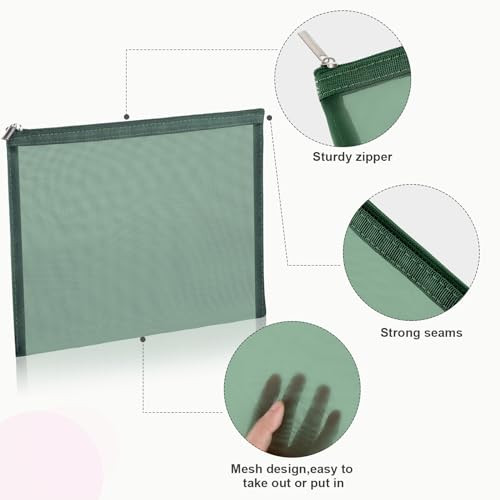 These mesh makeup bags are a game-changer for travel and daily organization! The see-through design makes finding items a breeze, and the sturdy zippers keep everything secure. Perfect for toiletries, cosmetics, or small accessories—love that they come in two handy sizes. The lightweight material is durable yet easy to clean, and the green color adds a nice pop. Great value for a set of six—ideal for gifting or keeping your essentials sorted at home, work, or on the go. Fast shipping and a reliable return policy make this purchase worry-free!
