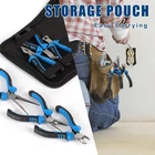 6 pieces mini pliers set is designed for installation and repair of precision instruments or parts in narrow spacess. It's perfect for a variety of clamping or cutting tasks, repair the , cut the steel wire, etc., 【MULTIPLE PLIERS】 This mini pliers set includes 6-inch mini needle nose pliers, 5-inch linesman pliers, 5-inch mini long nose pliers, 5-inch mini bent nose pliers, 4.5-inch diagonal pliers and 4-inch end cutting pliers. The 6 piece pliers tool set helps to fix electronic tools and is suitable for crafts making. 【HIGH QUALITY MATERIAL】 These small pliers are made from drop forged high-carbon steel with overall heat treatment for higher hardness and long-lasting performance. The nickle plating surface protects the precision pliers from rust and corrosion. Hardened cutting edge allows for sharp and easy cutting. 【SELF-OPENING SHRAPNEL DESIGN】 These micro pliers are equipped with double spring shrapnel to keep the small pliers open automatically. And the leverage design saves you a lot of effort to hold and squeeze the handles. It is easy to work with two or three fingers to carry out precision work in hard-to-reach spaces. 【EASY TO USE】 The mini pliers features bi-material TPR handle that offers a comfortable grip while using. This soft rubber handle can prevent fatigue even for long-time work. And the anti-slip design allows for precise control of the pliers tool set. 【WIDE APPLICATION】 This pliers set contains 6pcs pliers that can cut, strip, bend and twist iron wires easily. It is perfect for electronic repair, factory processing, machine maintenance, home appliance repair, jewelry making and DIY projects. This mini pliers set comes with a pouch for easy carrying and storage.