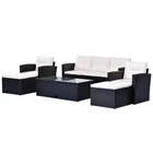 coffee table Wicker PE ottomans Outdoor Set wicker sofa 6-piece rattan Patio Description NOTICE: Small colored pillows are not included! For reference only! 【CONTEMPORARY STYLE】 Featuring trendy appearance and practical design, this will be an ideal hideaway for relaxing and enjoy your leisure time near the swimming pool, in your garden, on your patio, etc. With this wicker sofa set , you can enjoy trendy life and leisure time with you friends or family. 【Versatile】 The wicker sofa set provides seats for 7 people at most and can be placed in various layouts for different occasions and spaces, will be a good choice for your patio, deck, yard, garden, and even inner rooms. 【Durable Upholstery】 This outdoor patio furniture set made of durable but light-weight manually treated all-weather PE rattan wicker and rust-resistant galvanized steel frame. Strong steel frame supports sofas stability and balance. Removable glass & cushion covers are easy to clean. 【Measurements】 3-Seats sofa bench size: 68.50 ” x 27.56 ” x 31.89 ”; Chair size: 27.56 ” x 27.56 ” x 31.89 ” ; Ottoman size : 23.62 ” x 23.62 ” x 15.75 ” ; Table size: 47.24 ” x 23.62 ” x 15.75 ”. This set is carefully packed in 4 flat packages, ensuring safe and secure shipping. A 12-month warranty is provided for assured purchase . 【 Made in Vietnam】 Features Product Type Patio Wicker Set Design Modern Products included 3-Seat sofa bench*1 + chair*2 +ottoman*2+coffee table*1 Material PE Wicker + Steel frame + Polyester+Sponge Color Dark grey wicker+Light grey cushion grey wicker+ Beige cushion Removable Cushions Yes Pillows Included NO Country of Origin Vietnam Weight Capacity 3-Seats sofa bench 750 lbs (250 lbs per seat) Ottoman 250 lbs Chair 250 lbs Coffee table 125 lbs Assembly Adult Assembly Required Yes Additional Tools Required All Tools Included Warranty Commercial Warranty Yes Product Warranty Yes Warranty Length one year Full or Limited Warranty Limited Product Dimensions 3-Seats sofa bench size 68.50” x 27.56” x 31.89” Chair size 27.56” x 27.56” x 31.89” Ottoman size 23.62” x 23.62” x 15.75” Table size 47.24” x 23.62” x 15.75” Cushion thickness 2.0" Overall Product Weight 156.56 lbs Package Weight 178.14 lbs eBay Cross Border Trade powered by ChannelEffect