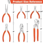 PACKAGE INCLUDING: Our pliers tool set including 6 Inch Long Nose Pliers, 6 Inch Diagonal Pliers, 6 Inch Slip Joint Pliers, 8 Inch Groove Joint Pliers, 4-3/4 Inch Long Nose Pliers, 4-1/4 Inch Diagonal Pliers. Variety of pliers for projects and tasks ranging from fastening to wire cutting. PREMIUM QUALITY: Pliers are made of premium drop forged hardened carbon steel with nickel-plated, which ensures our pliers are sturdy, durable, and long-lasting. Tips: pliers are covered in grease to prevent getting rusty, wipe grease off before using. ERGONOMIC DESIGN: Non-slip, comfort grip handles provide better leverage when gripping objects. Hardened cutting edges for extra-tough and easy cutting. Heat-treated jaw help with gripping power and the overall life of the product. 6 PIECES BASIC PLIERS TOOL SET: Our 6-piece set of pliers can be used for gripping small parts, bend, shape, and twist wire, tightening & loosening nuts, bolts, pipe & fittings, holding or bending flat or round stock and cutting wires. WIDE APPLICATION: These pliers are great for home repair, gardening, and a variety and general use.