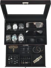 This watch organizer is a game-changer! The two-layer design keeps my watches and sunglasses neatly separated, while the spacious drawer fits all my jewelry without clutter. The quality feels premium, and it’s the perfect size for my dresser. Love how everything stays organized and protected—definitely worth it!
