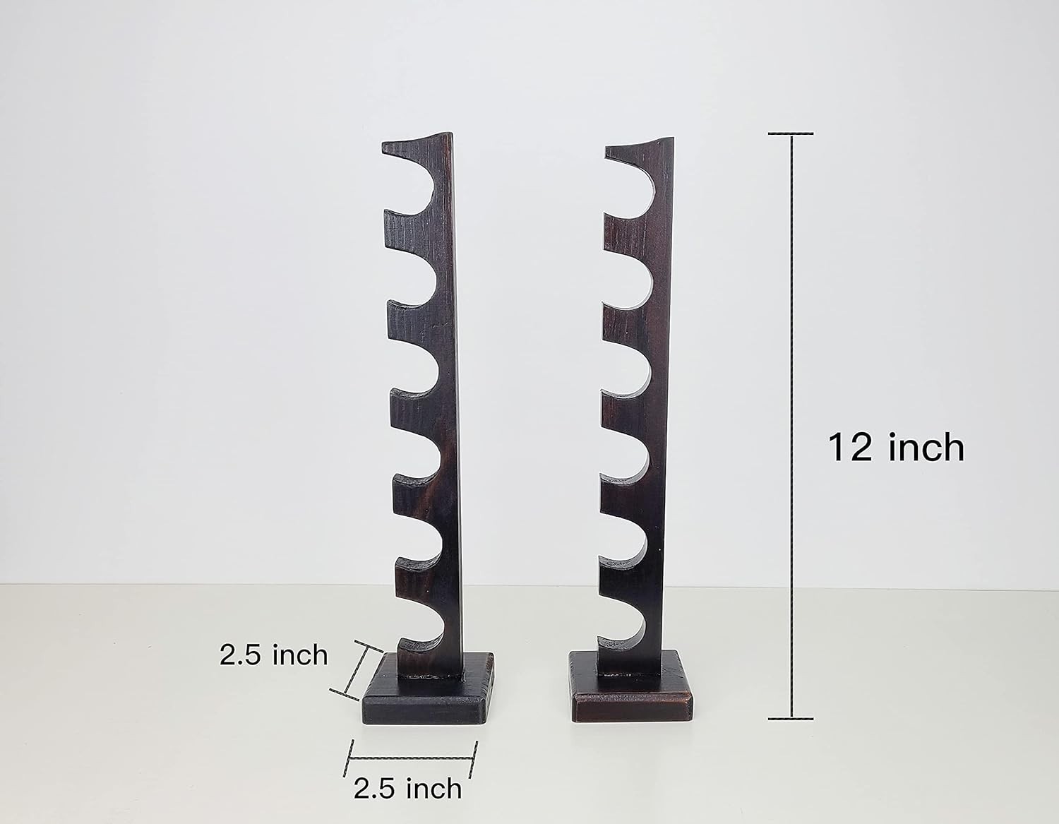 About item ELEGANT DISPLAY - The way this wand stand displays provides an amazing decoration for your home or office SOLID & STURDY - Made of high quality solid wood, with big base, it's very stable to hold 6 wands MULTI-PURPOSE STAND - Comes with 2 separated parts, it perfectly fit long or short wands and swords SIZE MATTERS - Measuring 2.5"x2.5"x12.5", holes size 1", compact and nicely display your wands Amazing Gift Idea for Wands Enthusiast. Material: Pine Wood with dark finish. Wands not included