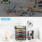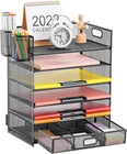 【Upgraded Desk Organizer】The humanized office organization owns 1 sliding drawer + 2 Hanging Pencil Holders and 2 Protable Handles which tidies up your desktop and is convenient to your office! All the designs specialized to comply with your office, such a perfect supplies desk organizer must be the best choice for your office accessories! 【Multifunction Organization】The paper tray organizer is very suitable for storing books, magazines, letters, and A4 paper. The drawer organizer and hanging pen holder enough accommodate all office supply accessories, such as pens, pencils, scissors, and so on. Perfect Size: 12.1*15.9*9.1 inch. 【Easy To Assemble】The installation of the office supplies organizer can be completed in 12 minutes follow the instruction book, super easy to assemble don't worry about any questions about that! 【Premium Material】The desk organizers and accessories is made of lightweight durable metal mesh and reinforced with a solid steel frame that makes it have long-lasting strength and reliable performance. 【Risk-Free Purchase】Our store regard customer satisfaction as our biggest motivation. So, if there is any problem with our product, please be free to contact us, we would offer a 90-day return policy! there is no risk at all, please do not hesitate to order soon! Product Description Package including: 1 x Desk File Organizer 2 x Hanging Pencil holders 1 x Sliding Drawer 1 X Product Instruction 6 Tray Desktop File Organizer With Handle Our Feature Portable handle is convenient to move and place as you need. Our desk organizer owns 6 trays and 2 Hanging Pencil Holders + 1 sliding drawer which would store all kinds of office supplies. Upgraded construction brings a more sturdy desk organizer, and easy to assemble also. DIMENSIONS: 12.8” L x 12.8” W x 9.1” H Easy to move Unique portable handle design which makes the paper sorter organizer very convenient to move and place where you need it! Sliding mesh tray 6 sliding trays for easy accessing document. It is a great way to hold all your office supplies without taking up too much space. Practical Organizer Not only would store A4 size paper or documents, but also hold all small office supplies, such as pens, scissors, binders, stationary.