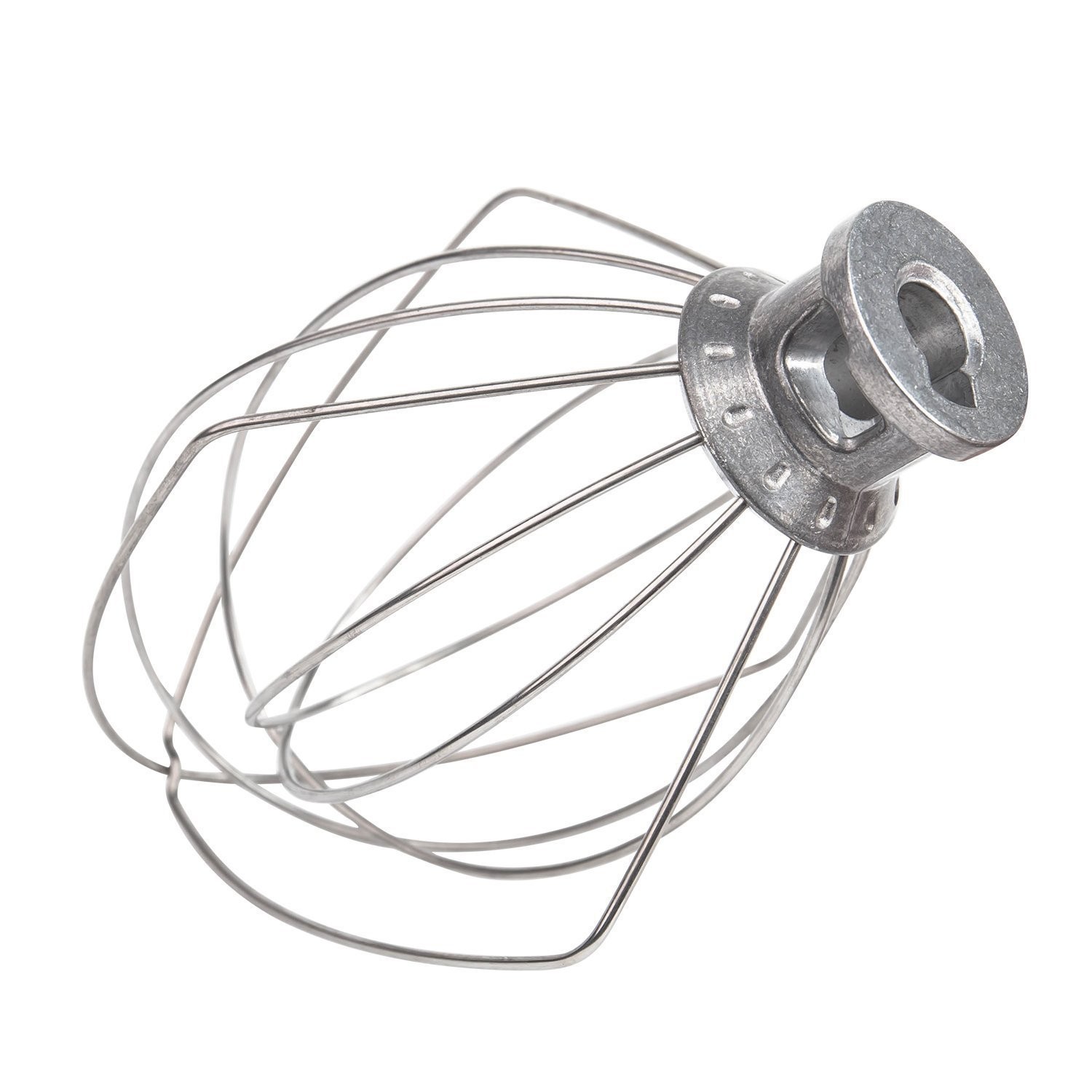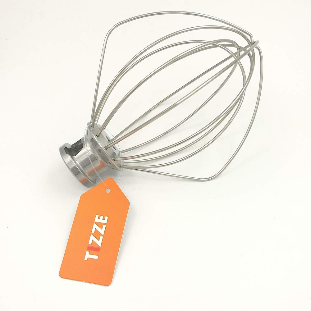 High quality stainless steel Wire Whip aftermarket replacement for KitchenAid Tilt-Head Stand Mixer replaces part numbers of K45WW, 9704329, 4162165, 9706446, 4176070, K455 and 4169927. Fits Models: KitchenAid K45SS, KSM110, KSM103, KSM75, KSM95, K45, KSM100 and KSM90 stand mixers Wire Whip for mixtures that need air incorporated: eggs, sponge cakes, egg whites, angel food cakes, heavy cream, mayonnaise, boiled frostings, some candies etc. How to Attach/Remove a wire whip To attach Wire Whip: 1. Turn speed control to OFF. 2. Unplug Stand Mixer or disconnect power. 3. Tilt motor head back. 4. Slip beater onto beater shaft and press upward as far as possible. 5. Turn beater to right, hooking beater over pin on shaft. 6. Plug into a grounded 3 prong outlet. To Remove Wire Whip 1. Turn speed control to OFF. 2. Unplug Stand Mixer or disconnect power. 3. Tilt motor head back. 4. Press beater upward as far as possible and turn left. 5. Pull beater from beater shaft. How to adjust the BEATER TO BOWL CLEARANCE If the Wire Whip hits the bottom of the bowl or is too far away from the bowl, you can correct the clearance easily 1. Turn speed control to OFF. 2. Unplug Stand Mixer or disconnect power. 3. Tilt motor head back. 4. Turn beater height adjustment screw SLIGHTLY counterclockwise (left) to raise the Wire Whip or clockwise (right) to lower the Wire Whip. 5. Make adjustment so that the Wire Whip just clears the surface of the bowl. If you over adjust the screw, you may not be able to lock the motor head when it is lowered. Cleaning Tips: Wire Whip should be hand washed and dried immediately. Do not wash the Wire Whip in a dishwasher. Do not store the beaters on the shaft Package include: 1 x Wire Whip 6-WIRE WHIP: quickly incorporates air into ingredients for fluffy whipped cream, perfect boiled frostings and cakes with whipped egg whites RUSTPROOF&BURNISHED: made of high quality durable stainless steel, which is rustproof&burnished and easy to clean(Handwash only) GOOD CAPABILITY: fits KitchenAid K45SS, KSM110, KSM103, KSM75, KSM95, K45, KSM100 and KSM90 models stand mixers OEM STANDARD: built to strict quality control standards, up to OEM standard and can replace the part number of K45WW, 9704329, 4162165, 9706446, 4176070, K455 and 4169927 Tips: Handwash only