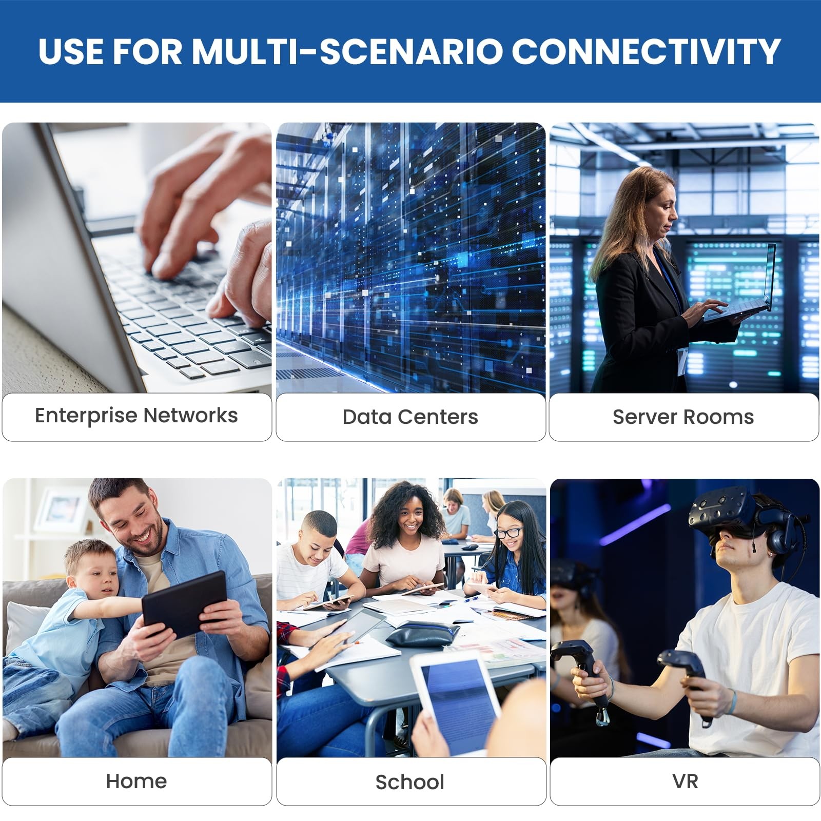 Product Description: For those who want to future-proof their residential or commercial network as much as possible without a significant cost increase, the Cat 6 internet cable is a great choice. Cat6 cables are used for wired home and office networks, data transfer and phone lines and have been designed specifically for Gigabit ethernet applications. They perform at high-data transfer rates, provide exceptional transmission performance with low signal losses, support frequencies of up to 500 MHz, and are suitable for high-speed 10GBASE-T internet connection for LAN network applications such as PCs, servers, printers, routers, switch boxes, and more, while remaining fully backward compatible with your existing network. The 6 ft cat6 ethernet cable features 8 Flexible solid copper conductors 24 AWG. Each of the 4 unshielded twisted pairs (UTP) are separated by a PE cross insulation to isolates pairs and prevent crosstalk and covered by a 5.8mm PVC jacket with RJ45 connectors and gold-plated contacts. complies with TIA/EIA 568-B.2, is ETL verified and RoHS compliant. are backed by a limited 1-year warranty should any issue arise. For questions or concerns please contact our friendly, USA-based customer support team. Specifications Cable Type: CAT6 4-Pair UTP Connector Type: RJ45 Conductor Gauge: 24 AWG Compatibility Devices with RJ45 jacks, including computers & peripherals like routers, switch boxes, network printers & network attached storage devices and is backwards compatible with Cat5 and Cat5e. Please note: Network speed is determined by factors other than just cables, like a router/switch box. The speed of the network can only be as fast as the slowest component. Package Includes: 2 Cat 6 patch cables, 6’ each, black and blue PVC jackets. QUALITY CONTROL - Each Cat 6 internet cable 6 ft goes through rigorous testing to ensure a secure wired internet connection with exceptional speed and reliability. PERFORMANCE - High performance Cat6 ethernet patch cables are designed with extremely well-matched components for outstanding uniform impedance and very low return loss, providing lower crosstalk, and a higher signal-to-noise ratio. They support frequencies of up to 500 MHz and are suitable for high-speed 10GBASE-T internet connection for LAN network applications such as PCs, servers, printers, routers, switch boxes, and more, while remaining fully backward compatible with your existing network. CERTIFICATION - Cat6 Ethernet cable with CM grade PVC jacket complies with TIA/EIA 568-C.2, is ETL verified and RoHS compliant. CONFIGURATION - The 6 feet cat 6 ethernet patch cable features 8 solid copper conductors 24 AWG. Each of the 4 unshielded twisted pairs (UTP) are separated by a PE cross insulation to isolates pairs and prevent crosstalk and covered by a 5.8mm PVC jacket with RJ45 connectors and gold-plated contacts. The molded strain relief boots help avoid snags that will damage your cables. They are molded for flexibility and resist common wear and tear. SUPPORT – are designed to last. If an item is defective or breaks within a year, we will issue a replacement. For questions or concerns please contact our friendly, USA-based customer support team.