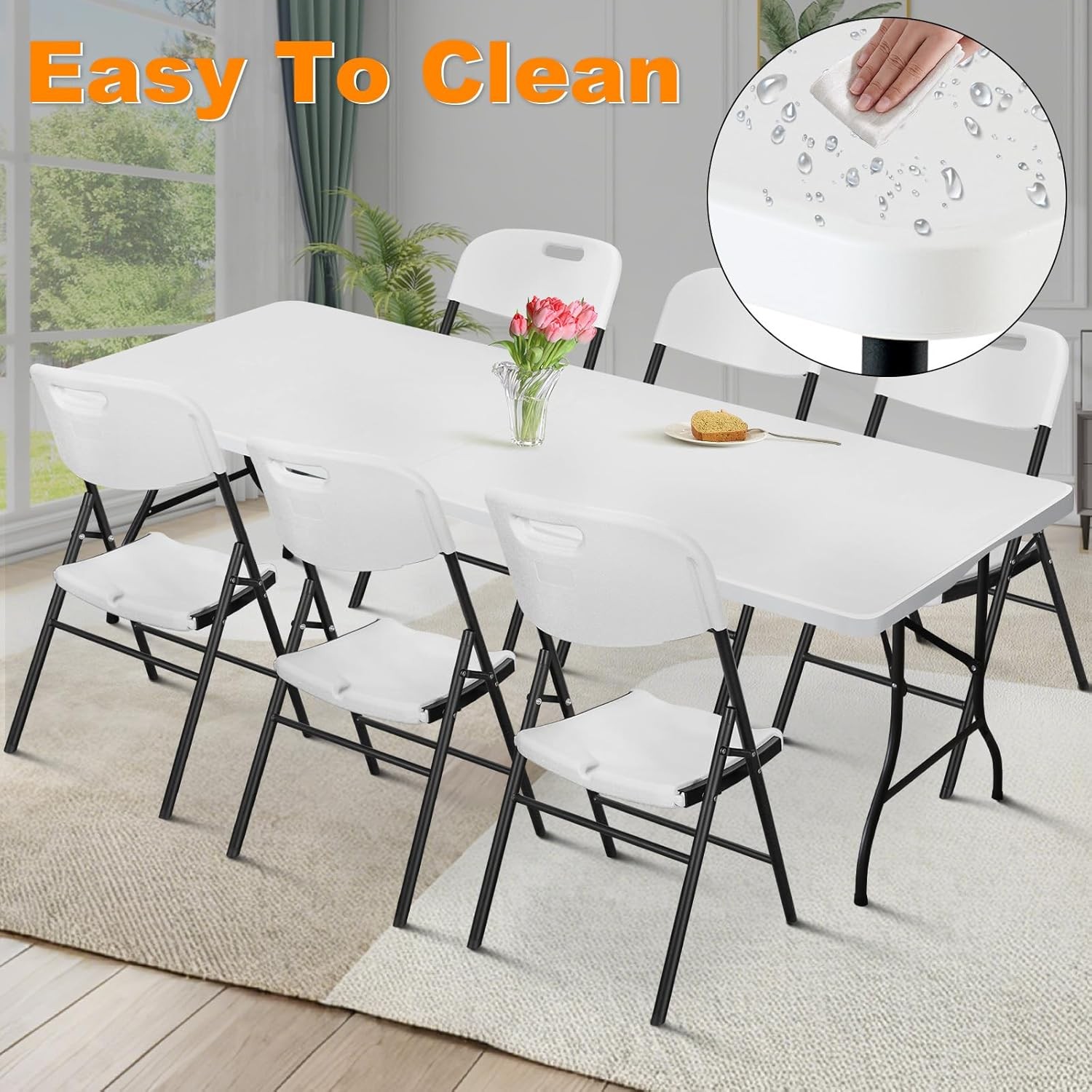 $ 50.374ft Folding Table, Portable Fold-in-Half Adjustable Height Utility Table for In