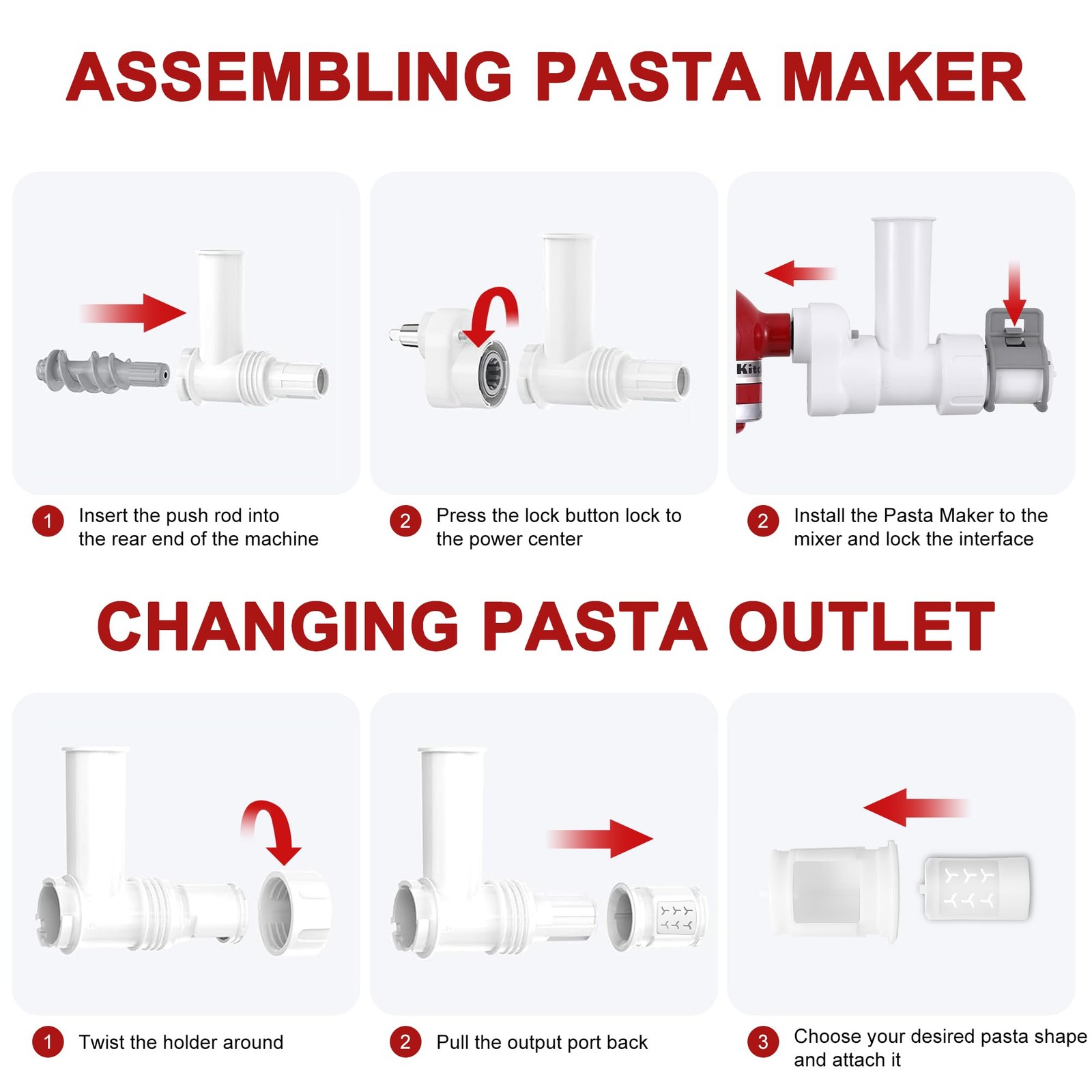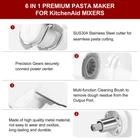6 IN 1 Gourmet Pasta Attachment for KitchenAid Stand Mixer, Extruder Pasta Maker Attachment with 6 Different Shapes Outlet for KitchenAid Stand Mixer, Pasta Press Outlet Kitchenaid Mixer Accessories 【Versatile Pasta Making】Transform your KitchenAid stand mixer into a versatile Kitchenaid gourmet pasta press with this 6-in-1 attachment. Effortlessly create six pasta shapes: Fusilli, Spaghetti, Bucatini, Rigatoni, Large Macaroni, and Small Macaroni. The built-in wire cutter lets you control the length, providing you with perfect, homemade pasta every time. 【Convenient Storage and Great Gift】Our pasta press attachment is a thoughtful tool for families who already have a KitchenAid Stand Mixer at home. It doesn’t take up much counter space. Store it neatly in the included packaging box when not in use. It's a perfect Mother's Day, family parties, Thanksgiving, or Christmas gift for KitchenAid mixer owners, adding versatility to their kitchen and making homemade pasta a breeze. 【Durable and Efficient】Made from high-quality food-grade stainless steel, wear-resistant plastic, and sturdy metal materials, this gourmet pasta press maker attachment is built to last. The high-precision plastic gears ensure smooth and quiet operation, allowing you to make pasta efficiently and with minimal noise. Enjoy a high-quality pasta-making experience that’s built to last. 【Seamless Integration】Designed to seamlessly fit your KitchenAid stand mixer, this pasta attachment for Kitchenaid stand mixer saves valuable counter space and enhances your mixer's functionality. Setup is quick and easy, making the pasta-making process simple and hassle-free. It's perfect for busy families and pasta lovers who want to enjoy fresh pasta without the fuss. 【Easy to Clean】The detachable design makes cleaning a breeze. All parts, except the power center, are dishwasher safe, ensuring easy maintenance. The included cleaning brush helps remove any dough residue from the pasta press attachments.