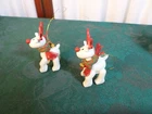 This is an adorable six piece set of animal designed ornaments. The set consist of: 2 - wooden reindeers done in white and red colors, 2 - plush mice in Santa's hat, 1 - Holstein cow with wings, and 1 - wooden Holstein cow on wheels dressed as Rudolph. They are unmarked. All being sold for one money in good condition. Stand not included. Buy more than one item and I will combine items to save on shipping charges!!!! All items are used unless otherwise stated. Therefore, they are sold strictly AS IS - AS FOUND. If you have any questions about an item, please email well in advance of the end of the auction. Be assured that I do take every caution when wrapping items. I like to wrap them how I would like to receive them myself. High bidder pays all shipping cost. Payment must be received within 5 days of auctions end. Please ask all questions before auction ends. Please visit my other auctions. Happy Bidding!!!