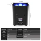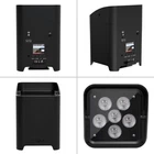 Lighting characteristics Light source: 6*18W high brightness LED lamp beads (RGBWA+UV 6 in 1) Light Colors: 16.7 million color variations Control mode: DMX512, master-slave control, self-propelled, 2.4G wireless DMX512 Channel mode: 6CH/10CH Lens angle: 15, 25, 40 Waterproof rating: IP22 Light source life: 50,000 hours APP Connection Operation Guide Mobile phone scan the QR code at the bottom of the product to download the APP. Turn on the power of the light, enter Shows-Wifi Mode in the operation interface, and press the confirmation button. Open the cell phone WIFI, cell phones connected to the lights WIFI. Open the APP down to refresh, you can operate HOLDLAMP Par Light 6 Color Modes 1.RED 2.GREEN 3.BLUE 4.WHITE 5.AMBER 6.UV Working time: RGBWA+UV full brightness working time: 3.5 hours Monochrome working time: 16 hours Self-propelled mode: 7.5 hours Charging time: 5 hours fully charged Product parameters: Color: black Material: aluminum alloy Input voltage: AC100V-250V/50-60HZ Power: 108W Control method: REMOTE CONTROL WIFI MOBILE APP CONTROL (SUPPORTS THE IOS AND ANDROID SYSTEMS) BUILT-IN 2.4G RECEIVER/TRANSMITTER Packing list: 6 in 1 par light *1 Remote control *1 Power cord *1 DMX cable *1 Features: ○ All aluminum body heat dissipation, silent operation. ○ Adjustable base ○ Rich lighting colors, 16.7 million color mixing variations ○ LCD screen (can display power) ○ Teapot base charging method (safe without leakage) ○ Ultra-high frequency (64KHZ) dimming technology, no jitter and flicker ○ Infrared remote control, support iPhone and Android phones using APP for control If you need an electronic version of the manual, we will send you the manual within 24 hours.