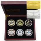6pcs Masonic Freemasonry Challenge Coins Crafts in Box Ornament Medals Gift