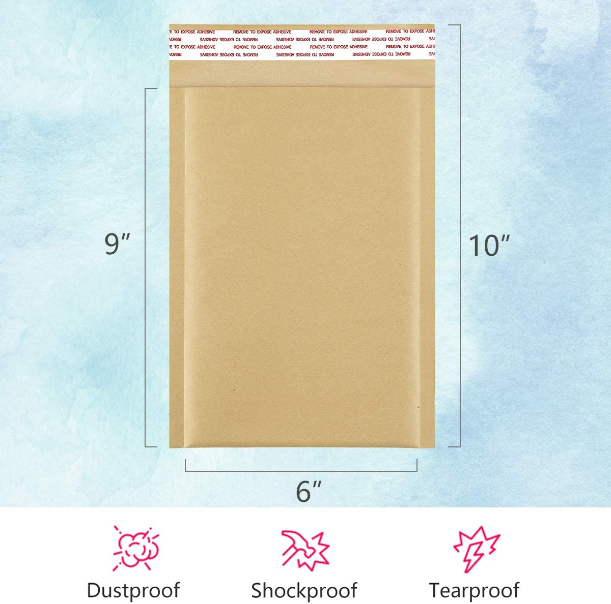 Natural Kraft Bubble Mailers: The brown kraft bubble mailers outer size is 6x10 inch, while the inner size is 6x9 inch, with brown kraft paper, which color is dim. Smooth surface is perfect for handwriting, labeling and stamping. With full air bubbles, our natural bubble mailers can protect your value products from damage caused by external impacts Strong Self Sealing Adhesive: Our padded envelopes is using four season adhesive, which can maintain strong stickiness throughout the year, even if the weather is very hot or cold. The strong stickiness prevents your items from being secretly replaced during transportation. The adhesive is covered with silver strip, which are easily peel off the strip and seal the bag Sturdy and Durable Construction: The thicken shipping bags covers with strong kraft paper material, making them not easily punctured. Beside, the bubble bags features with excellent shockproof and tearing proof effects because of the interior built with bubble lined wall construction and the reinforce sealing on the edge. They can keep your stuff safely to destination even though using on harsh environment Convenient and Easy to Use: These natual kraft padded envelopes are the perfect choice for small and middle business for easily using with not require extra packaging material, which can improve your company productivity at work, save much time. It is very suitable to transport for cards, CD, jewelry, makeup supplies and more Enhance Brand Influence: Bright colors bring a lively atmosphere, which makes the items you transport more conspicuous and will not be easily lost. Beautiful colors can also make your customers happy and enhance your brand influence. We have been committed to making better products to serve our customers, so that their business can get better and better UCGOU 6x10" Natural Kraft Bubble Mailers 25pcs We UCGOU is the professional manufacturer specializing in producing all sorts of poly mailers and bubble mailers. Sustainable innovation is our unremitting pursuit. Padded Envelopes Protection Lined with bubble, Bubble mailers seal well and the padding is sufficient. The bubble mailer envelopes provid more protection during transit as compared to basic poly mailers and don't add too much bulk, as a result the shipping is so much better than the complicated larger packages. Enhence Company Image and Your Brand Tape, wrapping film and corrugated cardboard box......This is too much trouble when you prepare to ship somethings. It's time to say bye to the troublesome!! Come to UCGOU! Send your package in clean, simple but grand style which would help to upgrade your company professional image. Believe us. Bubble mailers with bright and pure color will allow customers to easily identify their orders from your shop when they arrive in their mail.