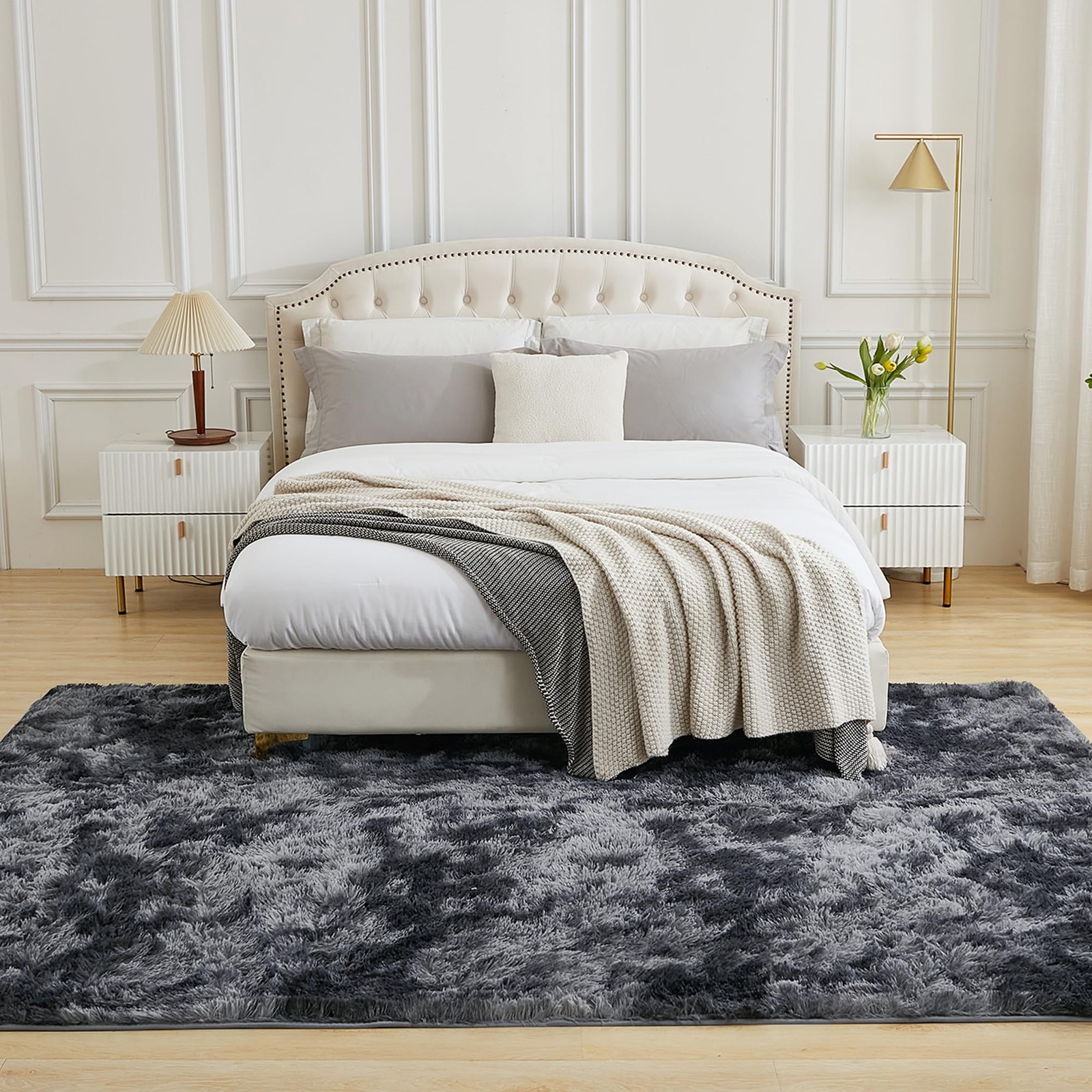 is committed to providing affordable and premium rugs for every family. 1. The fluffy faux fur is made of premium microfiber material, adding durable stitching and binding technology that keeps the fur shaggy long time and not easy to shed. Use a tight technical weaving process to make sure the edges are less likely to fall apart. After long-term continuous research, the anti-slip particles have high-quality anti-slip performance, which can hold the floor more firmly. 2. The comfy fuzzy plush rug combines a sense of cuteness and luxury with simple color, allowing the rug to go perfectly with any room, such as bedroom, nursery, kid's playroom, living room, or home office. 3. Since the area rug comes with a vacuum-sealed bag, it may be slightly thinner than the picture. You had better take it out and place it flatly for several days to make the fur more supple and the interlayer re-fluff fully. The rug is also easy to clean: you can use a vacuum cleaner or hairdryer to remove dust efficiently. Additionally, it can be wiped with a damp cloth. Preferred Premium Material: Featuring fluffy faux fur surface, which can be shaggy for a long time and not easy to shed. Super cozy resilient high-density sponge interlayer, which ensures the area rug is softer and more durable. Stepping on it will insulate you from the cold and hard floor. Non-slip Bottom: Thousands of non-slip dots at the bottom enhance the friction between the area rug and the floor, preventing it from sliding, and helping to prevent safety hazards such as trips and falls. Your kids or pets can play very happily and comfortably on the area rug. The non-slip rug will guard your every step. Perfect Family Decor: The comfy fuzzy plush rug combines a sense of cuteness and luxury with simple color, allows the rug to go perfectly with any room, such as bedroom, nursery, kid's playroom, living room, or home office. Enjoy a happy time chatting or playing with your family members on this ultra soft and skin-friendly carpet. Care Tips: Since the area rug comes with a vacuum-sealed bag, it may be slightly thinner than the picture. You had better take it out and place it flatly for several days to make the fur more supple and the interlayer re-fluff fully. The rug is also easy to clean: you can use a vacuum cleaner or hairdryer to remove dust efficiently. Additionally, it can be wiped with a damp cloth. Service Guarantee: There are multiple sizes and colors for your choice. We promise to return and replace the products due to quality problems within 42 days. If there are any questions or problems, please do not hesitate to contact us. We will try our best to solve the problem for you. We sincerely hope that every customer can have a satisfactory shopping experience. To protect you and your family's safety, please keep this product away from fire.