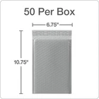 These 6" x 9" shipping envelopes with built-in bubble cushion protection are ideal for shipping softcover books, toys, CDS and DVDs, crafts, cosmetics, and other items you need to protect. Our bubble mailers add a layer of protective cushioning to alleviate the impact of rough and tumble transit to help your items arrive safe and sound. Also, they're lightweight to keep shipping costs low, and they're self-sealing for cleanliness and efficiency. Our bubble mailers with Redi-Strip peel and seal without moisture or mess, and each mailing envelope has anti-tear tape, so it's difficult to tamper with your belongings once they're sealed. Plus they're moisture and tear-resistant for an added level of security and protection for all of your valuable items. These poly bubble mailers are gray for a professional look and are perfect for keeping in stock for your business or home. Each mailer has 6" x 9" of usable space, and the overall dimensions are 6.7" x 10.75". Box of 50 Gray Poly Padded Mailers. Stock up on bubble mailers for your office, home or business; you get 50 gray poly padded mailers with an easy peel-off closure and a useable size of 6" x 9" The bubbled cushioning in these shipping envelopes softens the impact of travel and mailing; water-resistant bubble mailers safely transport books, jewelry, CDs or DVDs and more Our bubble-padded envelopes have efficient Redi-Strip self-sealing closures; there's no moisture needed with peel-and-seal envelopes; just lift the adhesive strip and press to create a secure seal