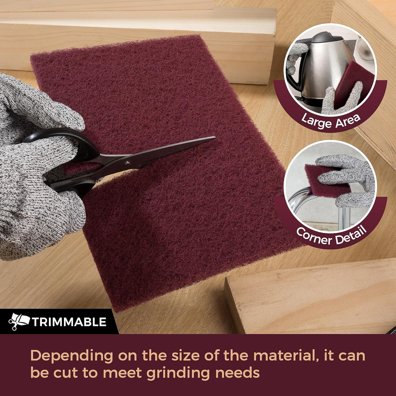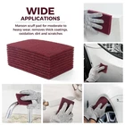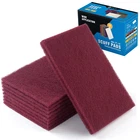 You will get:Includes 10PCS 6x9 inch high performance maroon hand-held scuff pads are used for medium to heavy surface abrasion and are suitable for removing thicker coatings, oxidized layers as well as dirt and scratches on the surface Excellent quality:Scuff pad consists of durable abrasive particles and binders that form a strong gasket that is tear-resistant and is commonly used for rough surfaces, and can be used to gently buff surfaces to smooth them and provide better adhesion Long-lasting durability:Prime non-woven pads have a long service life, with a thickness of 0.39in, and perform well on flat, contoured or hard-to-reach work surface areas, ensuring that they retain their performance over many uses, improving grinding quality and efficiency Application Scenarios:Be widely used in automotive restoration, maintenance and repair, woodworking and metalworking. In automotive restoration, scuff pads for paint prep are used to prepare automotive surfaces for repainting or repairing damaged areas Attention:Gloves and eye protection gear are recommended when using automotive scotch brite pads to prevent injury to skin or eyes from abrasive particles or contaminant splashes 6" x 9" Scuff Pad A tool for surface buffing, removing dirt and preparing coatings and an affordable tooling option, providing a better user experience and cost-effectiveness. Tear Resistant: The use of high-strength fibers as a base gives pad excellent tear resistance. This means that scuff pads can withstand greater pulling and twisting and are less prone to breakage, thus extending their lifespan. Flexibility: Our scuff pads have a certain bending ability and flexibility to adapt to the irregular shapes and curves of various surfaces, and are able to fit tightly onto uneven surfaces and remain stable during use. High Value: With tear resistance, abrasion resistance, and strong adhesion, scuff pads not only offer advantages in terms of longevity but also improve work efficiency by reducing material waste and preparation time. Product Information Dimensions: 6 x 9 inch Quantity: 10 PCS