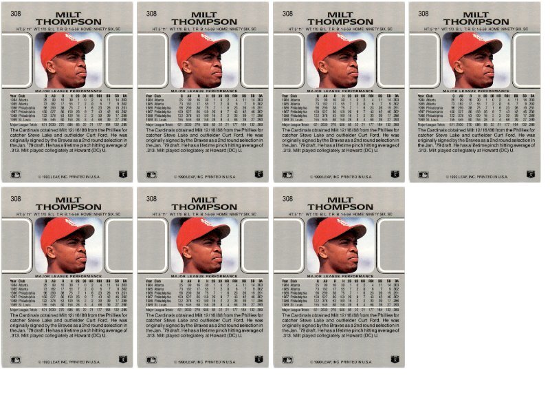 (7) 1990 Leaf #308 Milt Thompson St. Louis Cardinals Card Lot Condition: NM-MT