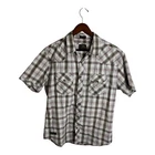 This 7 Diamonds men's shirt is perfect for any occasion. The multicolor plaid pattern and short sleeves make it great for travel and casual wear. The shirt features a collared neckline with a point collar style and button-front closure. It is made of 100% cotton and has several great features such as easy care, lightweight, packable, all seasons, pockets, and breathable. The shirt also has accents of buttons, buckles, and embroidery, adding to its Western cowboy design. The shirt is perfect for a party or cocktail event, as well as workwear. It is a regular fit and comes in size L. The garment care is simple, as it is machine washable. This shirt is a great addition to any wardrobe and is sure to impress. Pit to Pit 22”