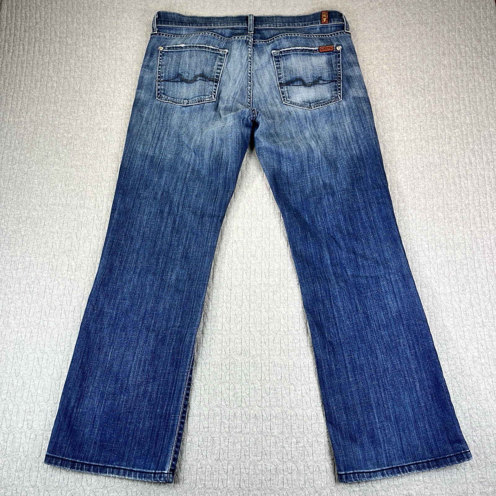 Great vintage, distressed, looking condition please examine all photos for flaws, measurements and exact fit Fit: Relaxed Type: Jeans Model: Seven 7 For All Mankind Relaxed Fit Fabric Type: Denim Fabric Wash: Medium Features: Pockets, Comfort, Distressed Material: Cotton Blend Accents: Button, Logo Closure: Button Keywords: Seven for All Mankind, 7 For All Mankind jeans, mens relaxed fit jeans, blue wash denim, button fly jeans, casual pants, everyday denim, comfort fit jeans, streetwear, mens fashion, designer denim, premium jeans, wardrobe staple, versatile jeansGreat vintage, distressed, looking condition please examine all photos for flaws, measurements and exact fit