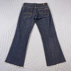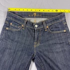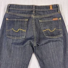 These 7 For All Mankind Bootcut Jeans are a stylish addition to any woman's wardrobe. Made in the USA with a dark wash denim fabric, these jeans feature a button closure and a low rise fit for a flattering silhouette. The bootcut style adds a touch of sophistication to the classic 5-pocket design, while the raw hem detail gives them a trendy edge. Perfect for any season, these jeans are a versatile piece that can be dressed up or down for any occasion.