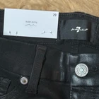 7 For All Mankind black high waist super skinny ankle jeans in a sleek coated finish. These give that leather-look, edgy vibe while still being comfortable and stretchy. A perfect staple for Y2K, rocker chic, model off-duty, and night-out styling. Easy to dress up with heels or keep casual with sneakers and a cropped tee. High rise waist Super skinny fit Ankle length Classic 5-pocket design Button and zip closure Coated black finish Brand: 7 For All Mankind Size: 29 Style: High Waist Super Skinny Ankle Measurements (laid flat): Waist: 13 in Length: 26 in Condition: New with tags. No flaws noted. Please review all photos carefully. Model image was created with AI to show styling inspiration and fit.