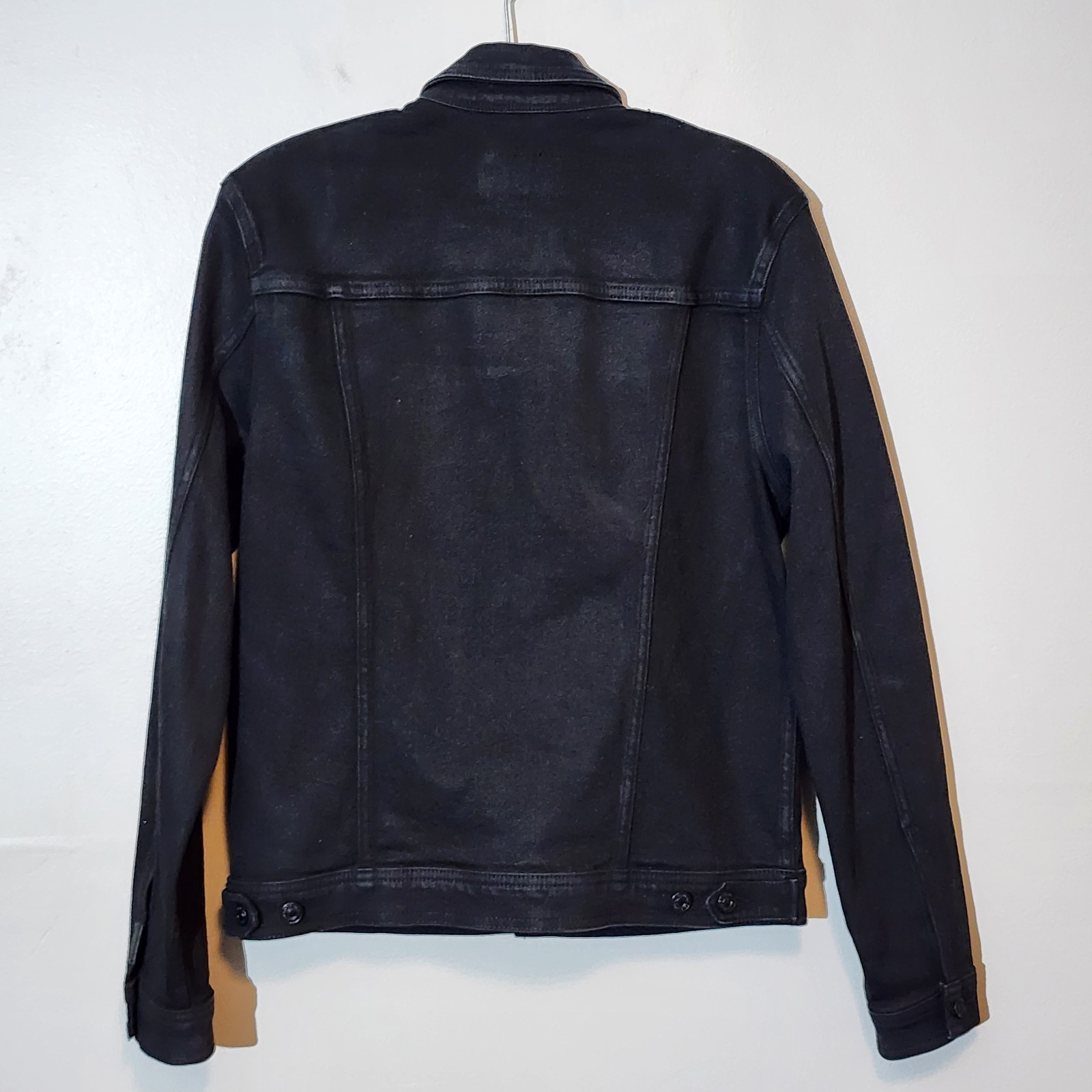7 For All Mankind Denim Trucker Jacket Mens Medium Black Grunge Stretch