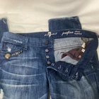 7 For All Mankind Studded Boyfriend Jeans Distressed Rhinestone Button Fly Pre-owned in Excellent Condition. Please see photos for condition, quality and size details. 138B2/8/02253