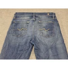 7 For All Mankind Gwenevere skinny jeans in a versatile medium wash blue. These designer denim pants feature a classic five-pocket styling with the brand's signature squiggle embroidery on the back pockets. Crafted from a comfortable cotton blend with a hint of spandex for stretch, they offer a flattering slim fit through the leg. Finished with a zip fly, button closure, and light whiskering at the hips for a lived-in look. Measurements: • Inseam: 29" Brand: 7 For All Mankind Model: Gwenevere Style: Skinny Color: Medium Wash Blue Material: 85% Cotton, 13% Polyester, 2% Spandex Closure: Zip Fly Pockets: 5-Pocket Features: Signature Squiggle Back Pockets, Whiskering Keywords: Designer Denim, Slim Fit, Stretch Jeans, Casual Wear, Everyday, Classic, Premium Denim, Indigo, Versatile, Transitional Every purchase takes the BLUES away!
