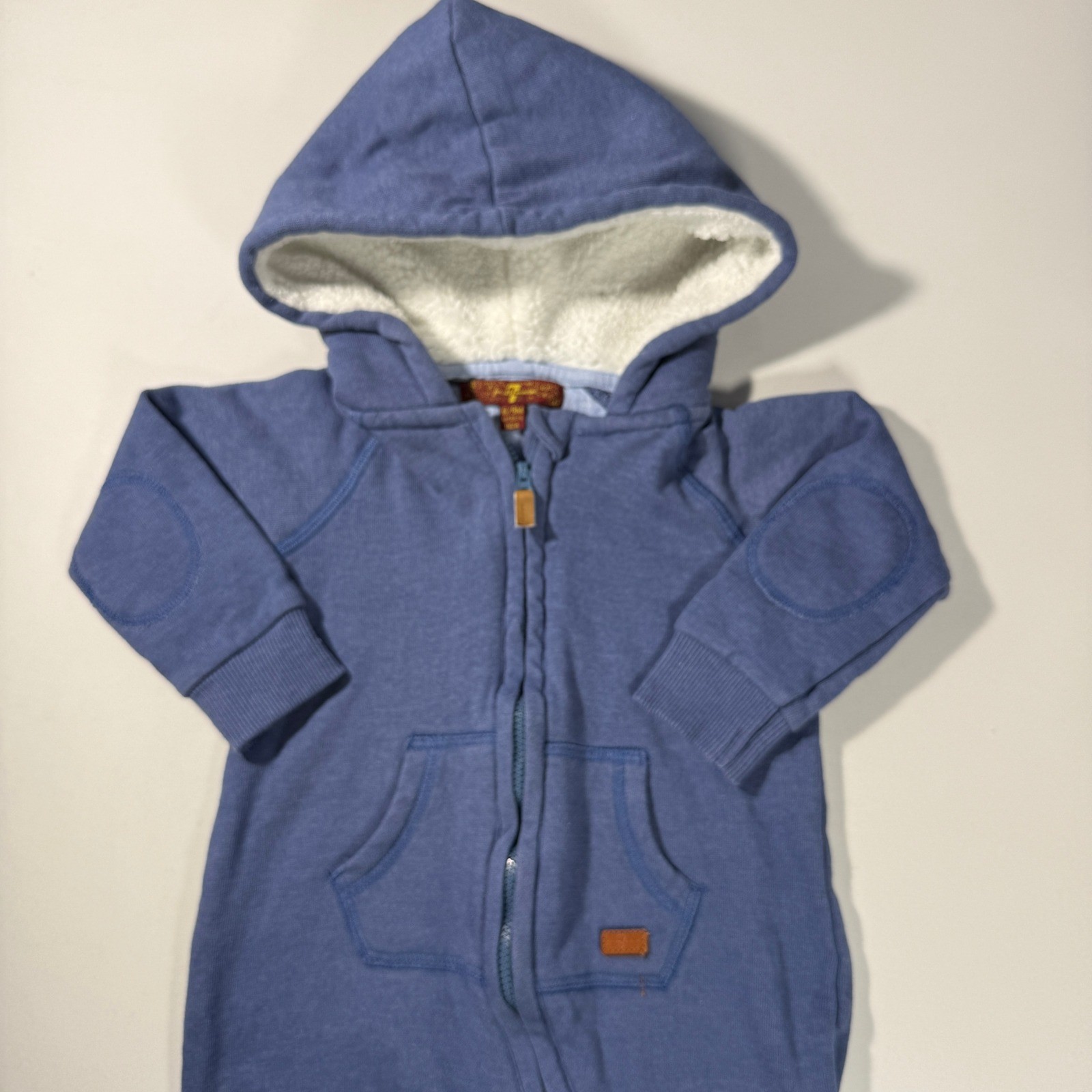 7 For All Mankind Kids Blue Fleece Sherpa Hooded Zip Romper Size 6/9M