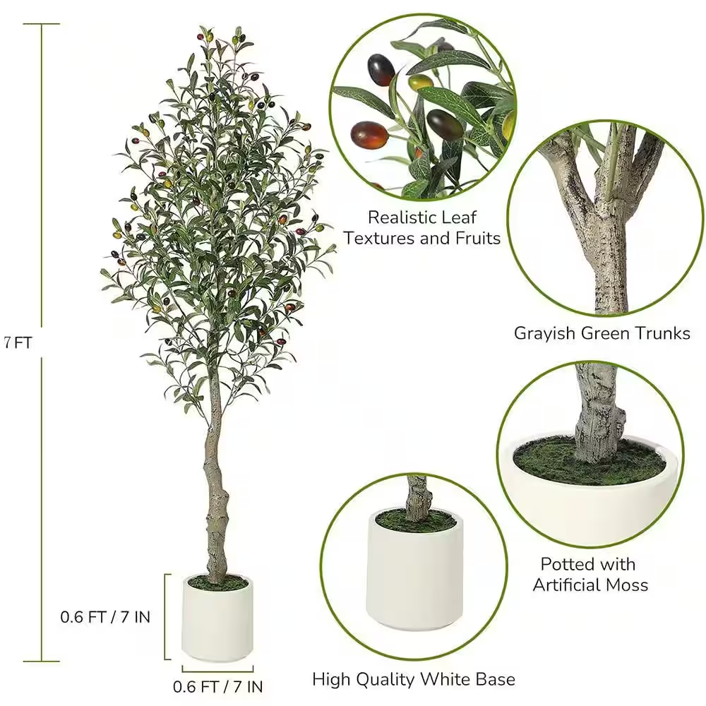 Fast Shipping On All Items 30 Days Money Guarantee Customer Support Excellent Service 100% Satisfaction Satisfaction Guaranteed 7 Ft. 2-Piece Artificial Tree, Faux Olive Tree Faux Simulation Fake UV Resistant Plants with Planter and Moss in Pot Specification Color Family Green Container Finish Family White Container Material Plastic Container Type Pot Indoor/Outdoor Indoor,Outdoor Material Plastic Plant Type Olive Product Weight (lb) 25 lb Returnable 90-Day Container Depth (in) 25.25 in Container Height (in) 4 in Container Width (in) 4 in Product Height (ft) 7 ft Product Height (in) 84 in Product Width (in) 20 in 20.0 inches x 25.25 inches x 7.0 ft. Weight: 25.0 lb Item Description Made of high-quality PE and PP to ensure durability Bendable steel wire branches allow easy shaping for custom look 7ft. tall artificial olive tree adds vertical interest Product DescriptionLive Life smarter. aims to provide multi-functional, high-quality, efficient, and space-saving products and services Previous page is a woman-owned start-up. Having easy-to-use, energy-saving and quality in mind, we design and sell products that help us to save time and money without sacrificing the quality and elegance We are enthusiastic and ambitious and aim to bring real change in people's home life. Bring timeless sophistication to any space with artificial olive tree, meticulously designed to replicate nature, this faux tree features Natural aesthetics: over 1,800 PE leaves with gradient coloring and soft edges create depth, while a hand-painted wood trunk adds organic texture, delicate fabric olives enhance realism Durable construction: high-quality pe+pp materials resist fading, even in sunny areas, bendable steel-wire branches allow easy shaping for a custom look Effortless styling: the included modern planter complements any décor, simply adjust branches to fill gaps or create a fuller silhouette Space-Enhancing height: at 7 ft tall, it adds vertical interest without overwhelming rooms pair with smaller plants for a curated indoor garden Perfect for those seeking hassle-free greenery, this olive tree is a statement piece for homes, offices, airbnb staging, or event backdrops About us We offer the best prices around on high quality products. Our E-store includes media such as books, movies, music and games while offering electronics, toys, sporting apparel, clothing, tools, general home, garden items and more. Shipping We are always working hard to ensure your package arrives as soon as possible. Please understand that some factors like weather, high postal traffic, and the performance of shipping companies are outside of our control. We offer free shipping to the lower 48 states and ship within 2-3 business days of payment, usually sooner. We do not accept P.O. Boxes. Please provide a physical address. For shipping outside of the continental USA, we only use eBay's Global Shipping Program.The item is shipped to KY and then sent to the rest of the world. International customers are responsible for all duties and taxes. Continue to check out to calculate costs for shipping the item to your country. Messages regarding eBay's Global Shipping Program MUST be directed at eBay EXCLUSIVELY. Returns We offer a 30-Day Return Policy on items in which you are not completely satisfied with. You have the option of a full-refund or an exchange of the item. No returns are available on items shipped outside of the USA Satisfaction We try over very best to make sure every customer is completely satisfied. If there's a problem, message us! We're happy to help. Payment Options Shop With Confidence