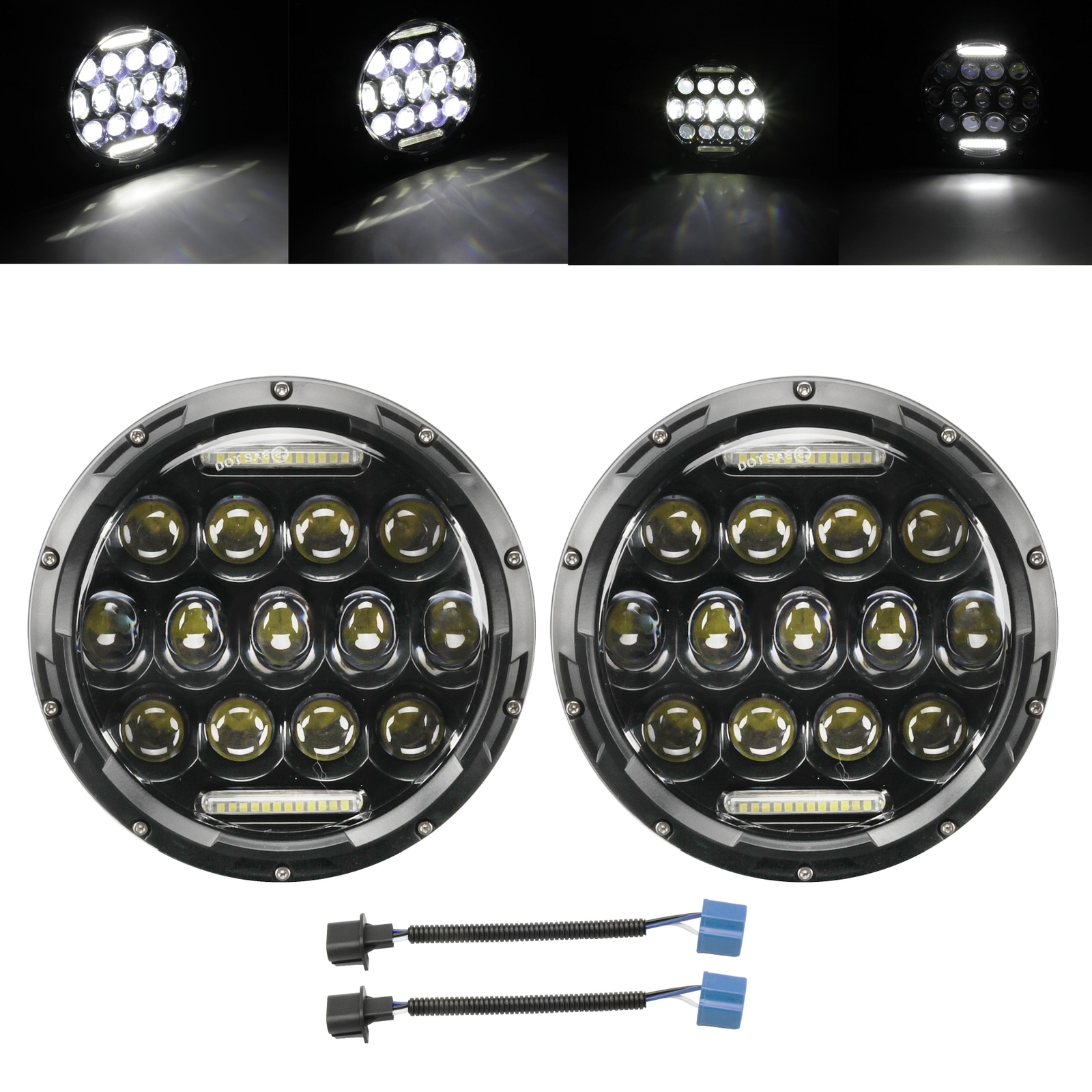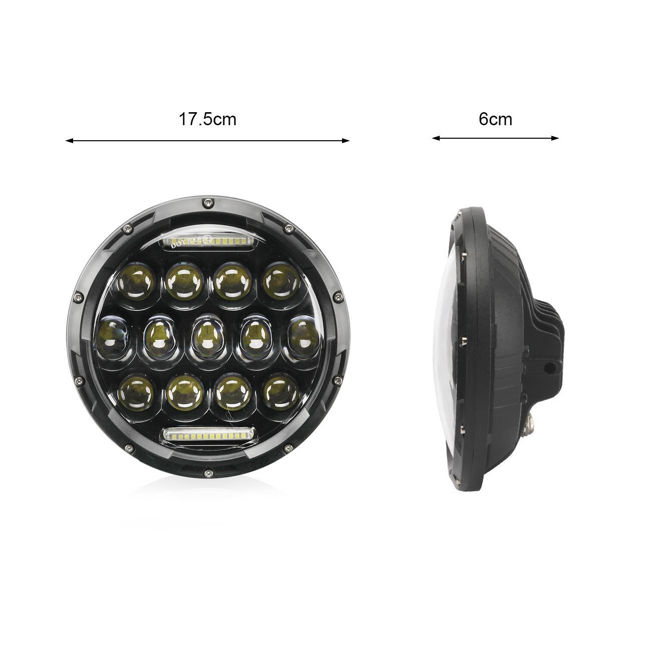 vernavali Welcome Product Description Notice: Please verify the year, make and model in the product details before purchasing. Professional installation is highly recommended if you have any difficult in installation. Please allow 1-2mm in size measurement chart for variance due to manual measurement. Fitment: (Fits following vehicles:) Jeep Wrangler TJ (1997-2006) Jeep Wrangler TJ Unlimited / LJ (2003-2006) Jeep Wrangler JK 2 Door (2007-2015) Jeep Wrangler JK 4 Door Unlimited (2007-2015) Land Rover Defender 90 & 110 AM General Hummer (1992~2001) Hummer H1&H2 (2003~2009) (H2 needs 9007 male to H4 female adapter, package not included) Uses existing headlamp retainer, installation in about 20 minutes. Wrangler JK Models reqiure H4-H13 adapter (Fits following motorcycle:) Any Har ley Davidson models with 7" headlight Har ley Davidson FLD 2012-2013 Har ley Davidson Touring Models 1994-2013 Har ley Davidson Softail Models 1991-2013 (Requires 7" Bezel Kit, Not Included!) Specifications: LED Power: 75W(13pcs*5W LED+10WDRL) Operating Voltage: DC12V Color Temperature: 6000k Working Life: 50,000+ Hours Beam: High-Low beam+DRL Waterproof Rate: IP68 Material: Die-cast aluminum housing, clear hardcoated PC lens Size: 180mm x 180mm x 82mm / 7.09" x 7.09" x 3.23" Features: 75W LED light has low beam, high beam and DRL function. Perfect sealed to prevent moisture and water build-up. 7 inch 75W headlights are designed for universal use. Fit most of headlights bucket without modification. Quick and convenient installation, just plug and play. H4 adapter harness & H13 adapter harness included. Can be applied to SUVs, Project Vehicles, Watercraft, Off Road 4x4, Mining Vehicles, Heavy Equipment, Trucks lights, Jeeps, Motorcycles, Snowmobile, etc. About the Adapter: They might be slight flickering cuz the voltage instability characteristics of JEEP WRANGLER rather than headllights themselves. You couldn't notice the original hologen headlight flickers because of luminance not strong enough. Be aware of that,Plug the headlight first,if the headlights are not flickering,just keep the adapter away. Package Include: 2 x 7 inch led headlights 2 x H4 wiring harness Product Display Payment We accept PayPal via eBay Secure Check-Out only. Payment is expected within 7 days of auction close. Unpaid Items will be forfeited per eBay . Immediate payment needs to be processed for items with Add to Cart option so that any promotional discounts can be applied to your order immediately. Shipping Notice: 1 .We do everything we can to ship your orders out as soon as possible. 2. Shipping and Handling: We process orders within one business day after the payment was clear. ---For domestic economic shipping, It normally takes 2-8 days for delivery. We may ship your order(s) from different warehouses for expedited delivery as we utilize alternative warehouses across the Continental United States.You may upgrade to UPS 3-day Selected which delivery time is typically 1-3 business days. Please be noted that, this service is more recommended for Monday-Thursday orders. Orders on Friday may be processed on following Monday by UPS, according to UPS's policy. ---For International Orders, items may be shipped from our warehouse in south China. Both are the same products and same warranty. Duties and taxes may apply. Please check with your country's custom and eBay policy for more information. Returns Our 30-day Satisfaction Guarantee assures our customers that they will receive all orders promptly and exactly as described. In addition, it allows customers to return new and unused products in their original factory condition for any reason within 30 days from the date of purchase. 1. All returns must be pre-approved by Rbigdoggy and have a return merchandise authorization(RMA) number. Unauthorized returns will not be accepted. 2. Buyers are responsible for appropriate packing, returning shipping cost, insurance and returning the item in "new" condition. Used items will not be accepted for return. 3. We will replace the returning item with an identical item, issue a full store credit or a full refund. The sole and exclusive maximum liability to Rbigdoggy arising from any product sold on Rbigdoggy ebay account shall be the price of the product ordered. Feedback 1. We appreciate your business and strived to improve our customer service and our commitment to quality. 2. We will leave a positive feedback immediately after payment is received. We appreciate a positive feedback as much as you do. 3. If for some reason there is any issue with the purchase, please contact us prior to leaving feedback, and we will be glad to work with you to have it resolved. Thank you for visiting my store!