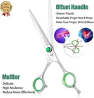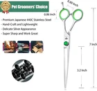 Color Silver Material Stainless Steel Brand PURPLEBIRD Blade Material Stainless Steel Product Dimensions 7.5"L x 2"W About this item FINEST MATERIAL - Cold treatment Finest quality and durable Japanese 440C stainless steel shears are tempered with Hand-sharpened cutting edges and Precise, Convex edge, Hollow-ground, extremely sharp cutting blades, which can evenly trim dog hair. Your pets deserve the best Right-handed dog shear and it will be your best assistant to cut thickest fur and the toughest tangles, making your lovely more beautiful and natural after trimming. ERGONOMIC & SAFE DESIGN - An offset handle with detachable finger rings and a finger rest is designed to relieve wrist pressure, make your fingers more comfortable and reduce occupational injuries. Blunt tips can protect protect skin well. High resilience muffler can reduce the friction between the handles to avoid making a loud noise to frighten your pet, make your pet enjoy a happier grooming process. MULTIFUNCTIONAL - 7 inches scissor with 3.2 inches cutting blade, the pet scissors are ideal for pet hospital, pet salon, and family to use on dogs, cats and so on. You can become a professional beautician at home and do pet grooming, saving time and money. The dog grooming shear is definitely the perfect gift for relatives and friends, especially for dog or cat lovers. CONVENIENCE - Light weight smooth blades make it Safe and Easy for anybody to handle the pet grooming scissors and cut hair. The inner grinds exquisite, the edge line is delicate and uniform,opening and closing are flexible, sharp and wear resistance. Equipped with an Raised and Adjuster screw, you can directly use your fingers to adjust the proper tightness. The screws with green imitation diamond are more like a delicate and stylish artwork. NO RISKING - The shears for dog grooming are packed in portable storage box and are coated with lubricating oil. Being confident in the quality of our products, and we will try to ensure Your Pleasant and No Risking shopping experience!