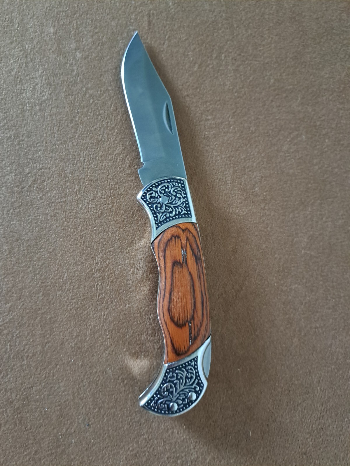 Introducing a stunning new pocket knife with a 7-inch blade made from high-quality stainless steel. The handle is crafted from beautiful wood, making it both stylish and comfortable to hold. Featuring one blade, this classic model is perfect for collectors and everyday use. The rich brown color adds a touch of elegance to the design. Ideal for a variety of uses, this pocket knife is a must-have for any blade enthusiast.