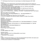 You may also like LS1 1/8"npt Turbo Oil Supply/Gauge Port Adapter 551608 For LS based engines US 15.75 USD Free shipping Tail light LED Conversion Harness PNP For Silverado LTZ Sierra Denali 2016-2018 35.78 USD Free shipping Pair Turn Signal Lights Corner Lights For 1999-2001 BMW 7 Series E38 Sedan White 29.78 USD Free shipping Left Outer LED Taillight Brake Light For Audi A6 C7 2012-2015 NEW USA 99.78 USD Free shipping Universal Red Car Auto 28LED 12V High Mount Third 3RD Brake Stop Tail Light 14.78 USD Free shipping NEW 1× Right Outer LED Taillight Brake Light 4GD945096 Fits Audi A6 C7 2012-2015 99.78 USD Free shipping For Mercedes Benz C Class W202 1994-2000 Pair Corner Lights Turn Signal Lamps CA 39.78 USD Free shipping Right Rear Tail Light Lamp 8R0945094C LED For Audi Q5 8R 2014-2016 US 139.78 USD Free shipping NEW-00004 7" LCD Display Touch Screen For Jeep Compass Car Radio Navigation 2017-2020 U DESCRIPTION 7" LCD Display Touch Screen For Jeep Compass Car Radio Navigation 2017-2020 Feature: 1: According to the original factory specifications,perfect match for the original car. 2: Own different test machines to design exact accurate parameter for our products.All items were tested for performance. 3: Made by high quality material, lightweight, anti-rust, colorfast and durable. 4: Aftermarket product with premium quality. 5: Stable performance, high reliability,suitable for replacing your broken one. 6:This Is The New Replacement Model Number For 17-20 Jeep Replacement 7" Uconnect Vp2 Lcd Monitor Touch-Screen Radio If You Screen Is Delaminating - Bubbling - Air Pockets - Leaking Sticky Fluid - Non Responsive, This Screen Will Fix Your Problem Other Part Number:Tdo-Wxga0700K00033-V2, Tdo-Wxga0700K00057-V1 This Is A 7" Screen Please Check And Make Sure That This Is For Your Radio A Lot Of Car Company'S Use Different Radio Company'S To Make There Radios Specifics: Condition: 100% Brand New Material: Glass Digitizer Color:show as pictures Manufacturer Part Number: ACT3S5370FPC-A1-E, TDO-WXGA0700K00057-V1, TDO-WXGA0700K00033-V2 Interchange Part Number: ACT3S5370FPC-A1-E, TDO-WXGA0700K00057-V1, TDO-WXGA0700K00033-V2 Other Part Number: TDO-WXGA0700K00033-V2 Type: Touch Screen Note: Only Fit 7 Inch. Fitment Type: Direct Replacement Fitment: For JEEP COMPASS 2017-2020 Package Include: 1PCS X 7 Inch LCD Touch Scree DISplay(With screen frame) (show as pictures) [* Instruction is not included!] Note: 1.Please check the description or use the year/make/model check finder and replace part numbers to confirm the compatibility before purchasing. 2.Professional installation is recommended. About Us Shipping Terms Of Sale Contact Us Areyourshop has committed to do our utmost to serve more vehicles models with the most competitive products both in price and service, including headlights, foglights, taillights,headlight assembly, etc., aiming at the largest group of customers. Paired with our fast shipping and satisfaction guarantee, we’re able to ensure that all the customers can get the product when they need it. Customer Satisfactory 1.We back our commitment with superb service, 100% full money back and a customer satisfaction guarantee. 2.I am here and ready to assist you with any questions or concerns you might have before or after the purchase. 3.My goal is to make sure you are a happy customer and pleasant shopping with us. Feedback If you are satisfied with the purchase and our total service, your comment is very important in our business success. Please take a minute to leave us a positive feedback with an overall Detailed Selling Rating (DSR) of 5. Our eBay account setup auto feedback, so eBay system gives you automatically Positive feedback back after your positive feedback left. If you plan to give us a neutral/negative feedback Or open ebay/paypal case, please write to us immediately so that we can do our best to resolve your problem. United States Buyers Parcel will via USPS or UPS from us United States warehouse Shipping Time Usually ,Parcel will be delivered 2-7 working day include Handling time. Sometimes shiping time may has a little delay, such as Bad wether,Holidays We stand behind everything that we sell and will do everything possible to assure you are satisfied. When you receive your purchase if you are not 100% satisfied, please sent me ebay message and we will do our best to make you happy. If you still want to return your purchase, simply ship the item(s) back to us and we will refund your original purchase price and the original shipping charge. Buyers are responsible for the postal cost of returning the items. We must be notified of the intent to return your item within 30 days of receiving the item. Items returned must be in the same condition that they were received. How to return 1,Please ask us for return address . 2,Shipping back the package . The RMA#(Return Merchant Authorization Number = Your ebay ID) must be clearly written on the return package ,Otherwise the package will be refused. 3,Sent us the return tracking number. 4,All returns will be inspected prior to a credit being issued. If you have any questions, welcome to send us ebay message. We strive to answer all questions and resolve any problems as quickly as possible. Business Hours: HongKong Time GMT+8:00 Monday-Saturday 9:00-17:00 About Us About Item All items sold by us are being described to the best of our abilities, as accurate as possible, and with utmost conscientiousness on our part. However, to avoid any potential oversights, I respectfully request your assistance in helping us to make this a mutually satisfactory transaction by THOROUGHLY reviewing item description and photos, and asking all questions PRIOR TO BIDDING. Customer Satisfactory 1.We back our commitment with superb service, 100% full money back and a customer satisfaction guarantee. 2.I am here and ready to assist you with any questions or concerns you might have before or after the purchase. 3.My goal is to make sure you are a happ