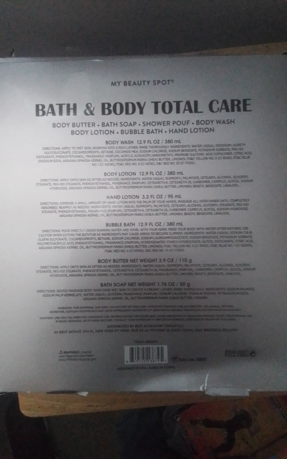Set Includes: Bubble Bath, Lotion, Shower Gel, Soap gtin13: 849525138795 Size: Regular Scent: Vanilla UPC: 849525138795 Type: Bath Accessories Set Brand: My Beauty Spot Department: Men, Teens, Unisex, Women
