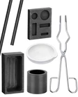 7 Pieces Graphite Torch Melting Casting Kit- 2 Graphite Mold, 2 Graphite Crucibles, 2 Graphite Rods,1 Tong for Melt. Package Contents: This graphite torch melting casting kit includes 2 graphite stir rod sticks, 1 graphite casting mold, 1 5-in-1 graphite ingot mold, 1 quartz crucible, 1 cylindrical graphite, and 1 tong. It's a convenient and comprehensive set that meets all your DIY needs for melting, casting, and refining various metals, jewelry, gold, silver, and more. Impressive Features: Our graphite casting molds possess outstanding thermal stability and fast cooling properties. Their excellent thermal conductivity allows for shorter casting times and energy savings, making your projects more efficient. Versatility: These graphite ingot molds are widely used for experiments and smelting of non-ferrous metals such as gold, silver, copper, aluminum, and more. They are also ideal for laboratory experiments, test analysis, and other purposes. Due to their size, they are particularly suitable for small-capacity metal melting projects. Reliable and Durable: Made from high-density graphite materials, our molds ensure a reliable and long-lasting usage experience. They are resistant to breaking or deformation, making them perfect for sharing with friends or family members during your crafting projects. Product Dimensions: The crucible mold has an diameter of approximately 3.93 x 1.96 inch. Each crucible stir rod is about 12 inch (30 cm) long. The 5-in-1 graphite ingot mold measures about 2.83 x 2.28 inch in diameter. The quartz crucible is approximately 2.28 inch in diameter and 0.98 inch in height, while the tong is around 9.44 inches long. The cylindrical graphite has a diameter of approximately 1.18 inch and height of approximately 1.57 inch.