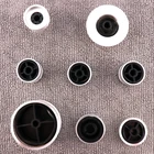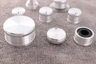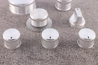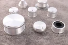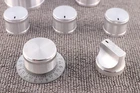 BRAND: Sanyo ITEM: Receiver knob set. Included will be 7 total knobs (Recording Levels are 2-piece). These will include: Recording Level (L-R move independently), Volume, Tuner, Bass, Treble, Function Selector, and Balance. Outer portion of knobs are aluminum while the inserts are plastic. Inserts have teeth for posts and are not stripped. These came from a vintage Sanyo 5252A combo receiver/8-track/cassette/record player stereo system. CONDITION: Knobs are in good but used condition. They cleaned up well leaving only a few minor scratches and spots of possible corrosion behind. Please see detailed photos. COLOR: Silver FEATURES: Post hole size is just over .25". They range from .252" - ~.257". We try to describe each item as exact as possible. These items come from a smoke-free environment. Questions are always welcome. Please check our feedback and bid with confidence!