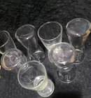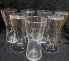 Set of 7 five inch tall, two and a quarter inch wide Pilsner Beer Glasses beautifully laser Etched with the letter "K" in an old English font. Circa 1960. No chips or cracks and very well taken care of. Spent the better part of the last 3 decades safely stored in a China cabinet. Would make an excellent personalized gift!