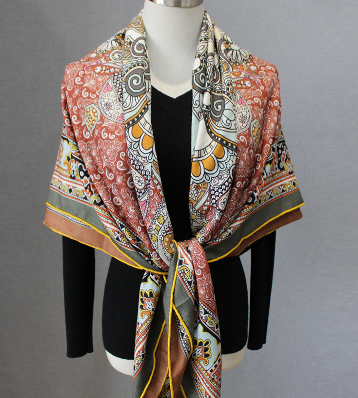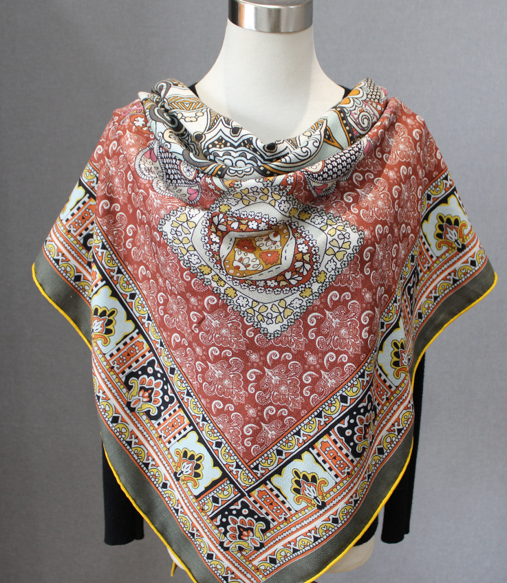 70% Cashmere 30% Silk Bandana Wrap Rural houses Print Double Face Scarf 53'' new