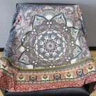 $ 31.6870% Cashmere 30% Silk Double Face Scarf Blue Floral Print 53 Inch Wrap Bandana