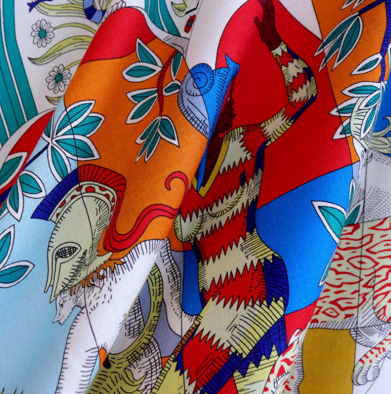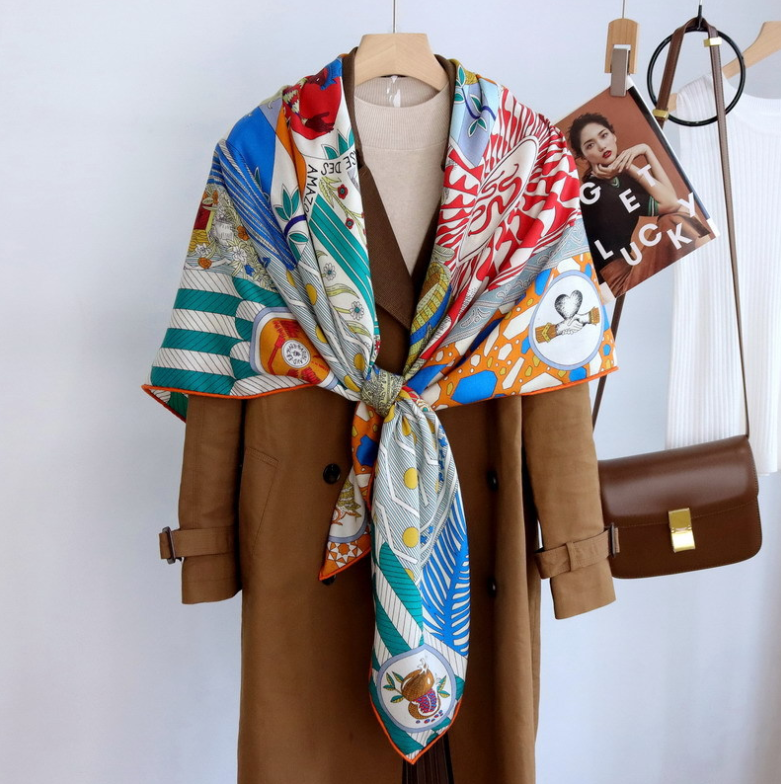 70% Cashmere 30% Silk Double-Sided Bandana Scarf 53 Inch Coconut Print Street Style