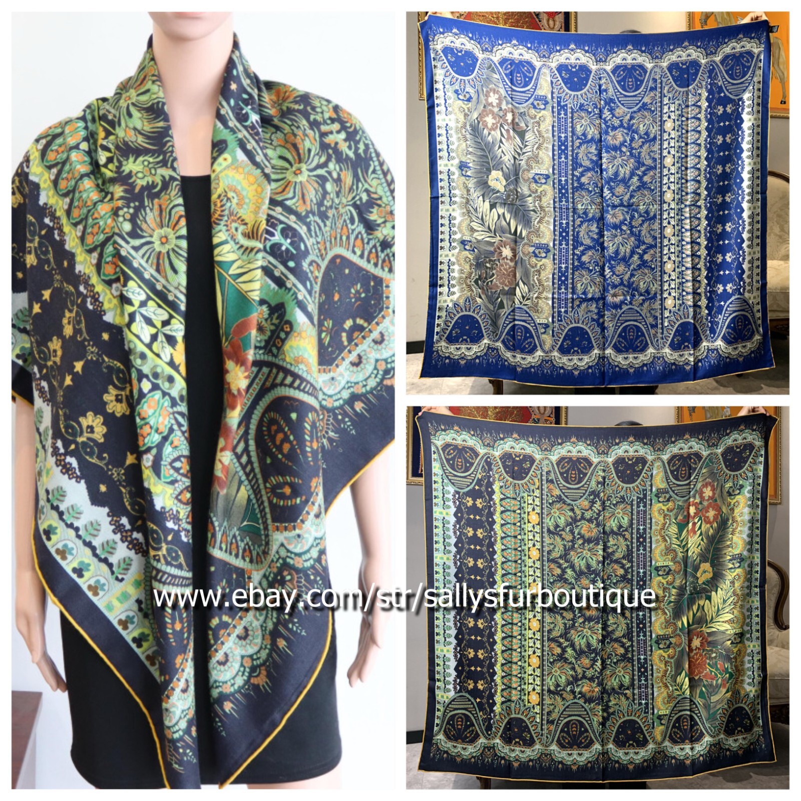 I have purchased many silk and cashmere scarves from Sally’s on multiple occasions. They are lovely, carefully wrapped, and promptly shipped. I will continue to do business with this seller.