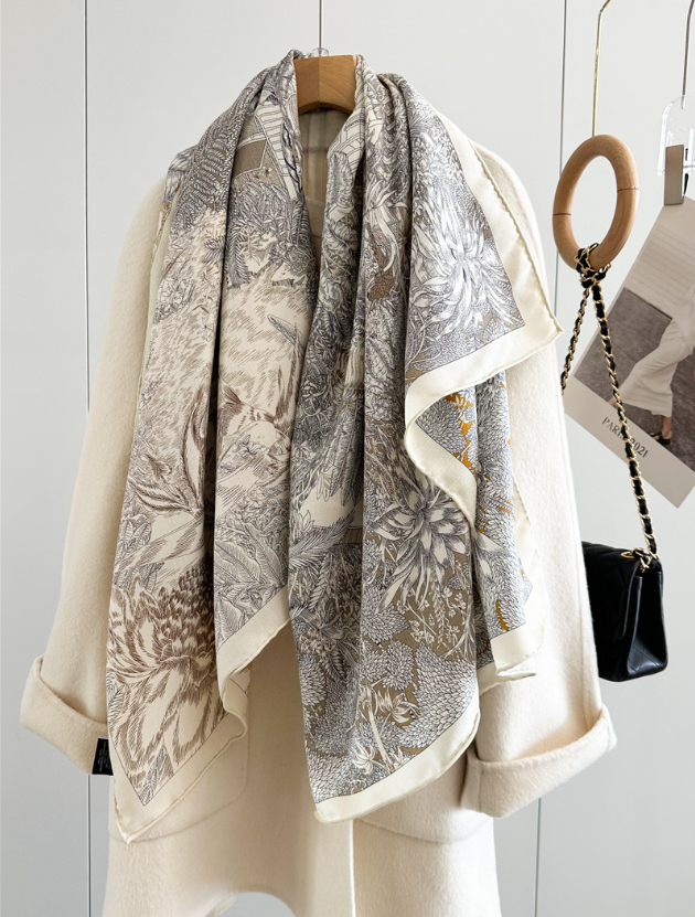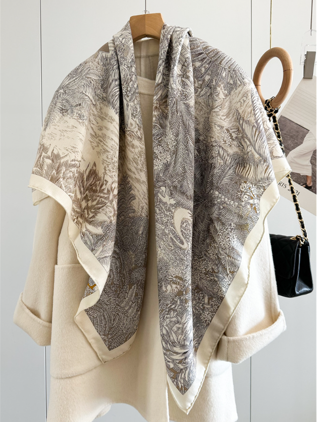 Sallys Boutique 14~18 Momme Twill Silk Wrap Scarf Saddle Print Square Shawl 35"