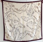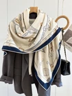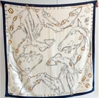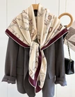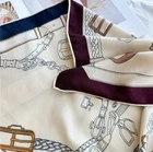 70% Cashmere 30% Silk Wrap Scarf fine horse Print Double Face Shawl 53" Brown